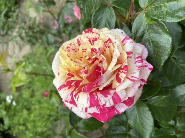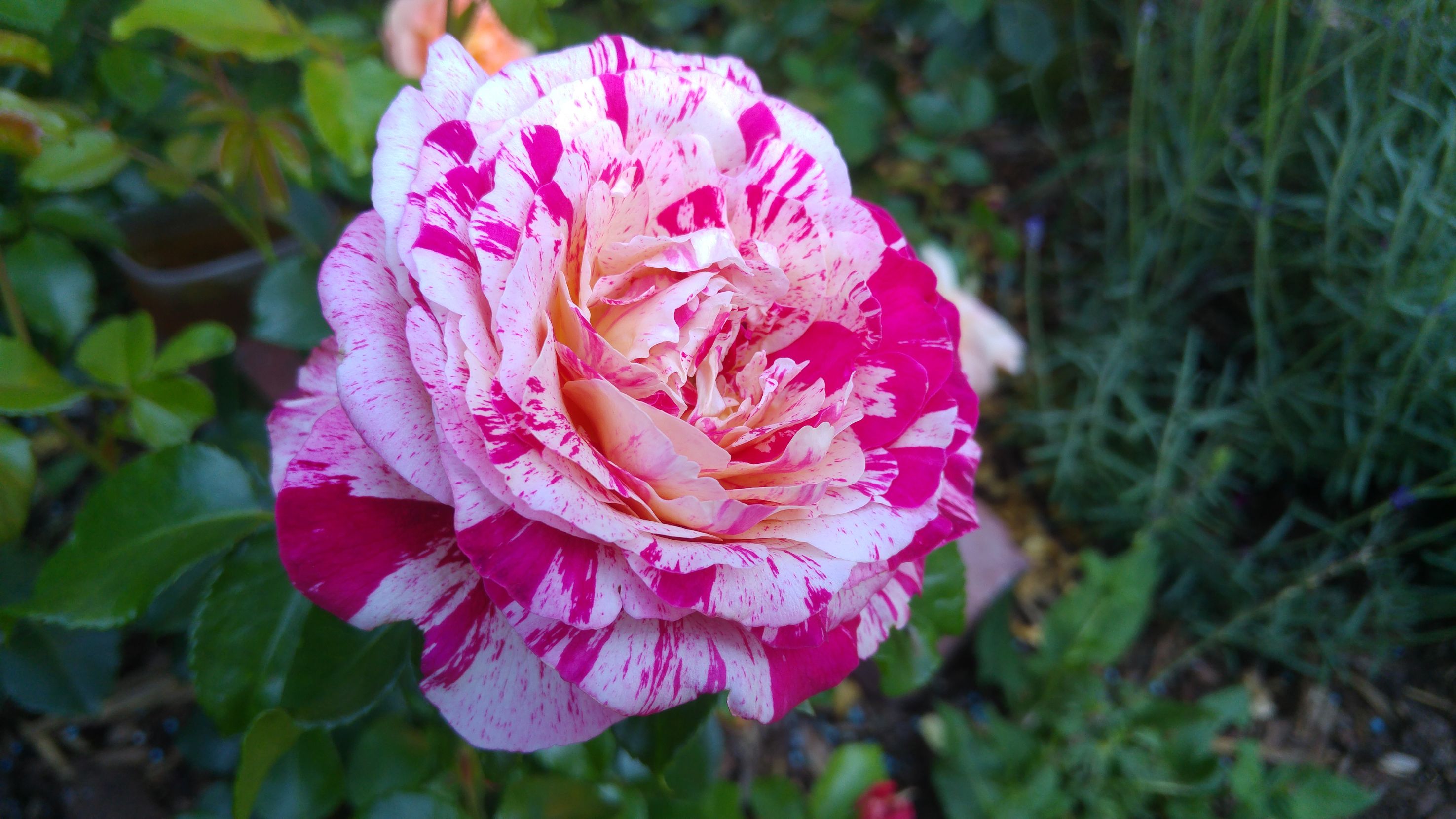 Eine unserer ersten Rosen - seid drei Jahren blüht sie unermüdlich in allen Schattierungen