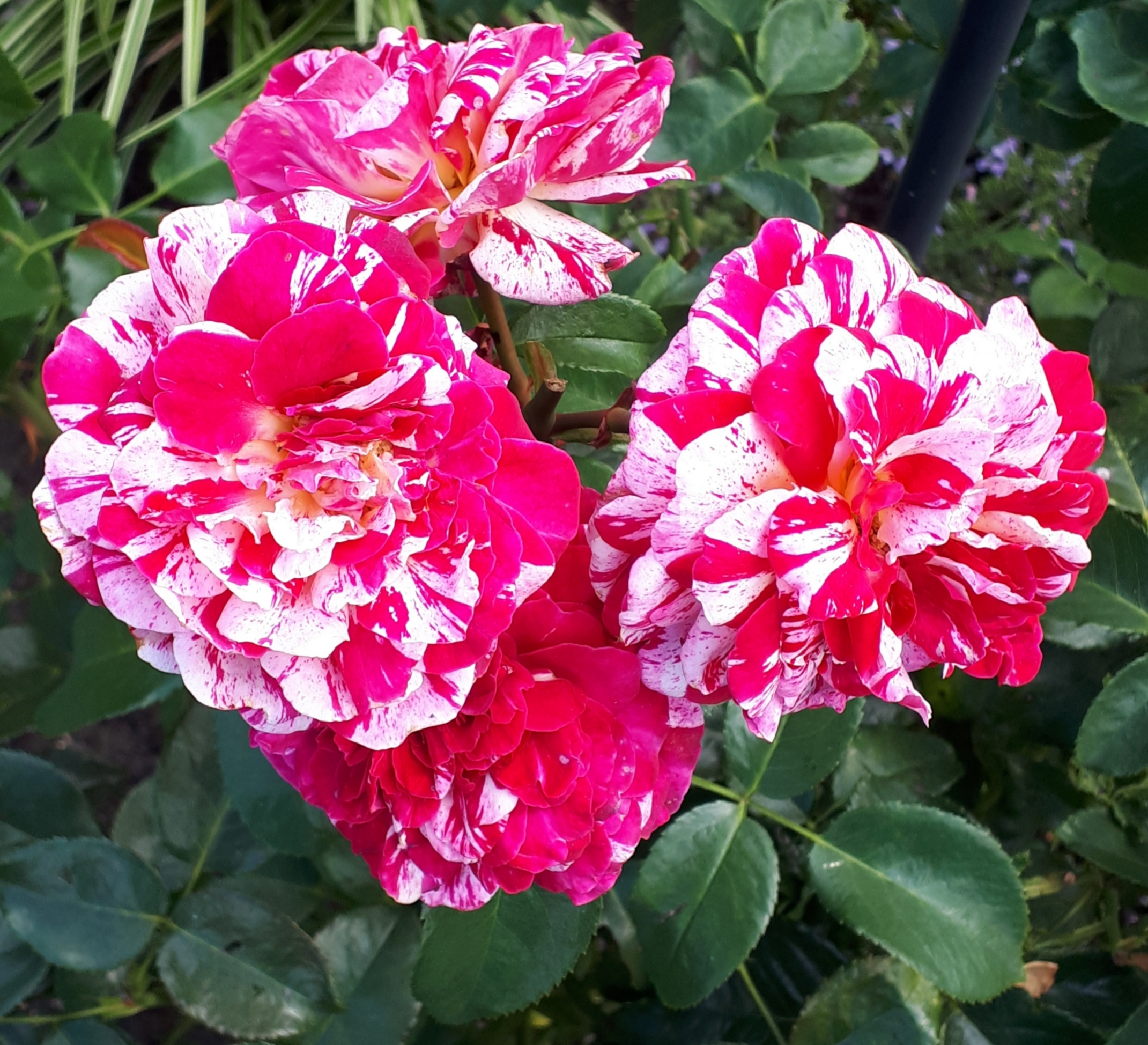 Tolle Kombination mit einfarbigen Rosen. Hat etwas Zeit gebraucht sich zu etablieren, seit dem waechst sie schwach blueht aber zuverlaessig ab dem 3. Standjahr.
