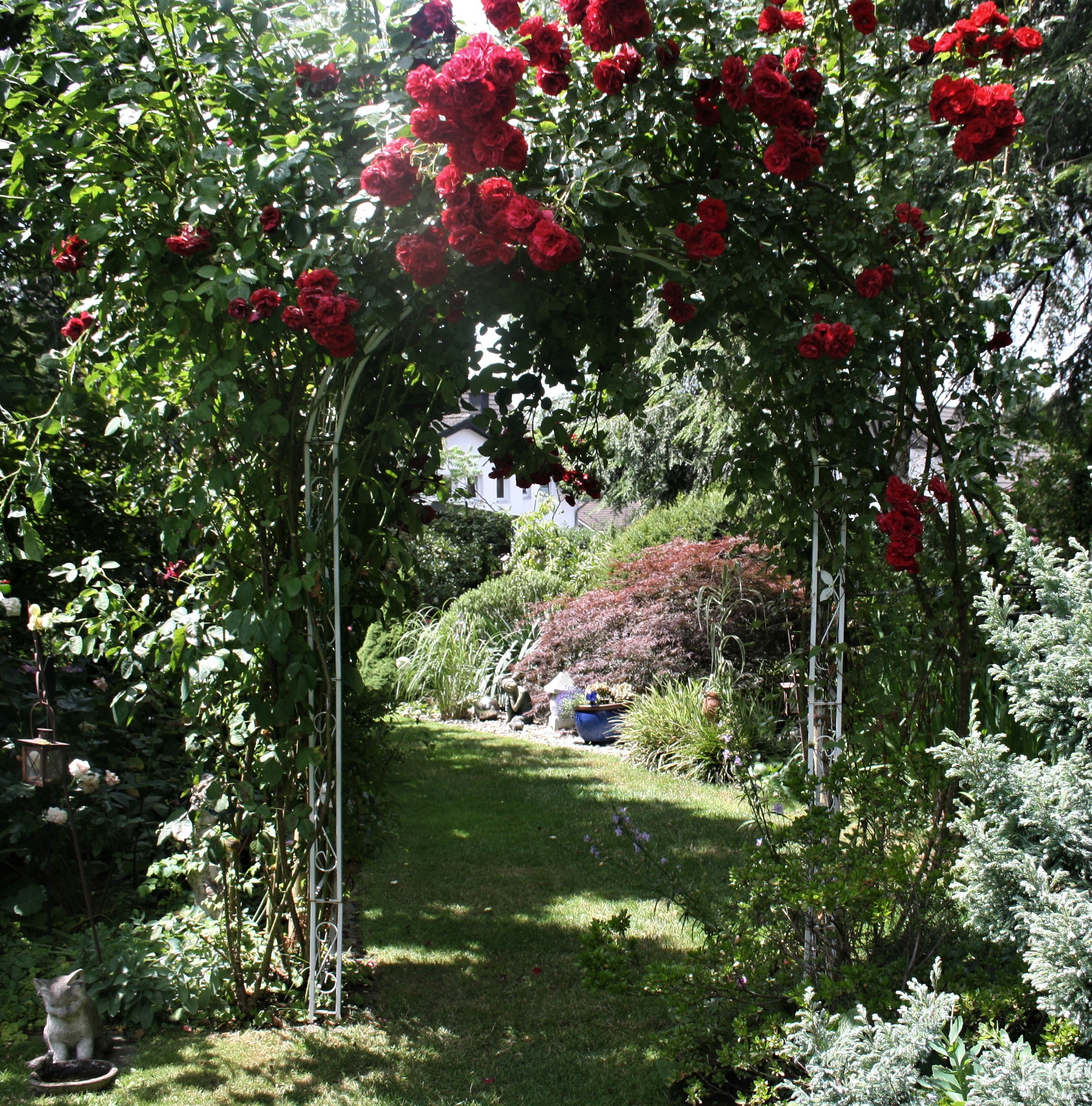 Amadeus gibt es gleich 3 x in meinem Garten, Hier umrankt sie einen Rosenbogen