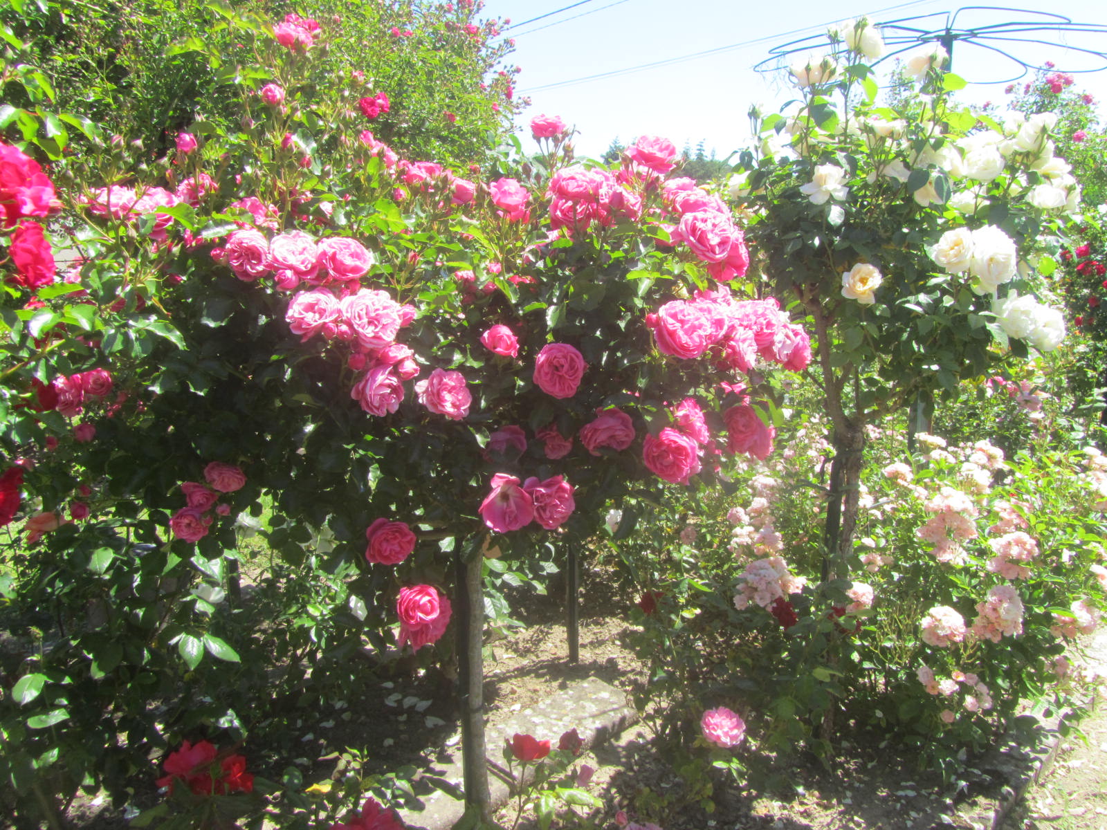 La rose est d'une jolie couleur et le rosier fleurit abondamment. Je l'ai en rosier tige dans ma roseraie, et les visiteurs l'admirent ! /The rose has a lovely colour and blooms generously. I have it as a standard rose in my rose garden, and visitors admire it!