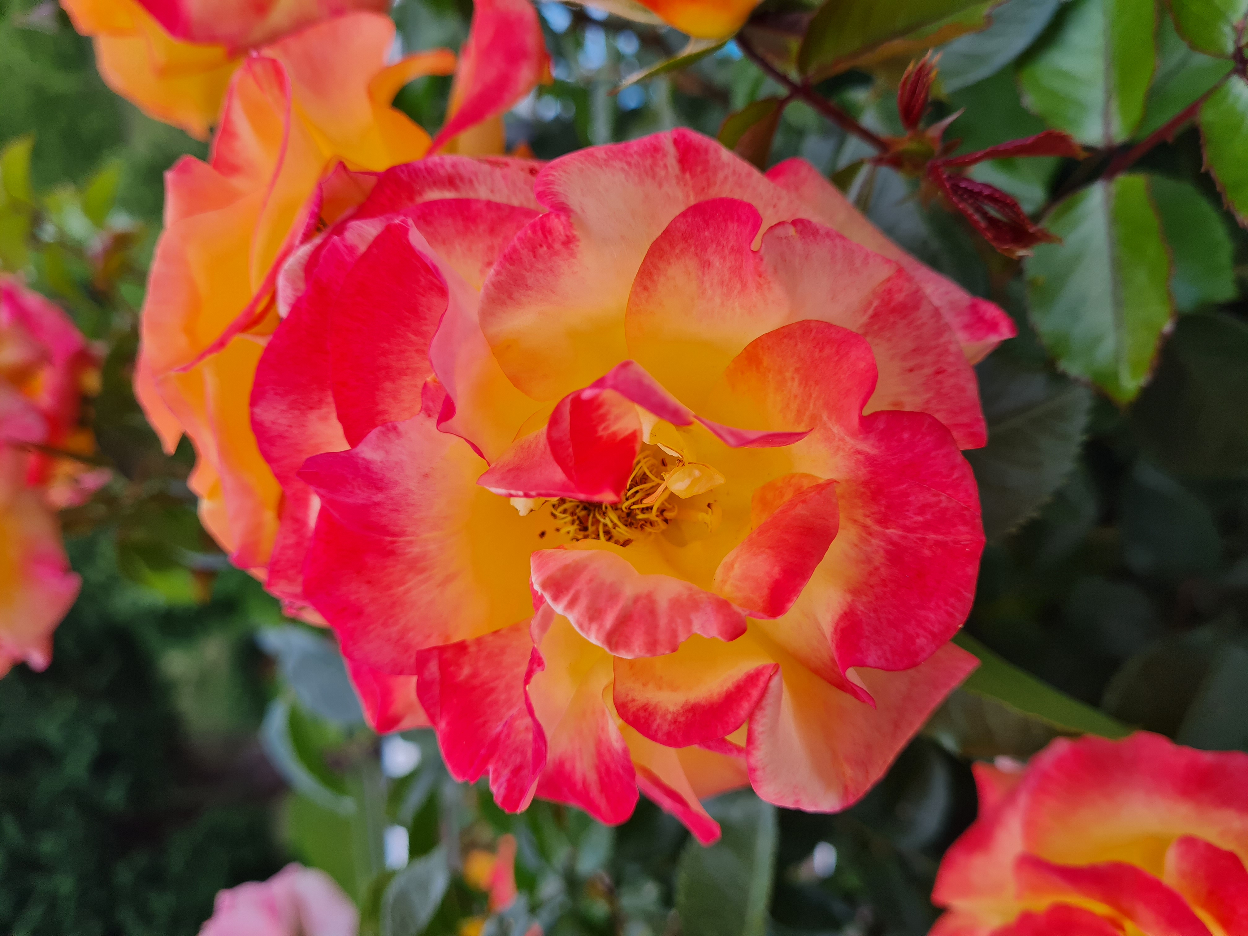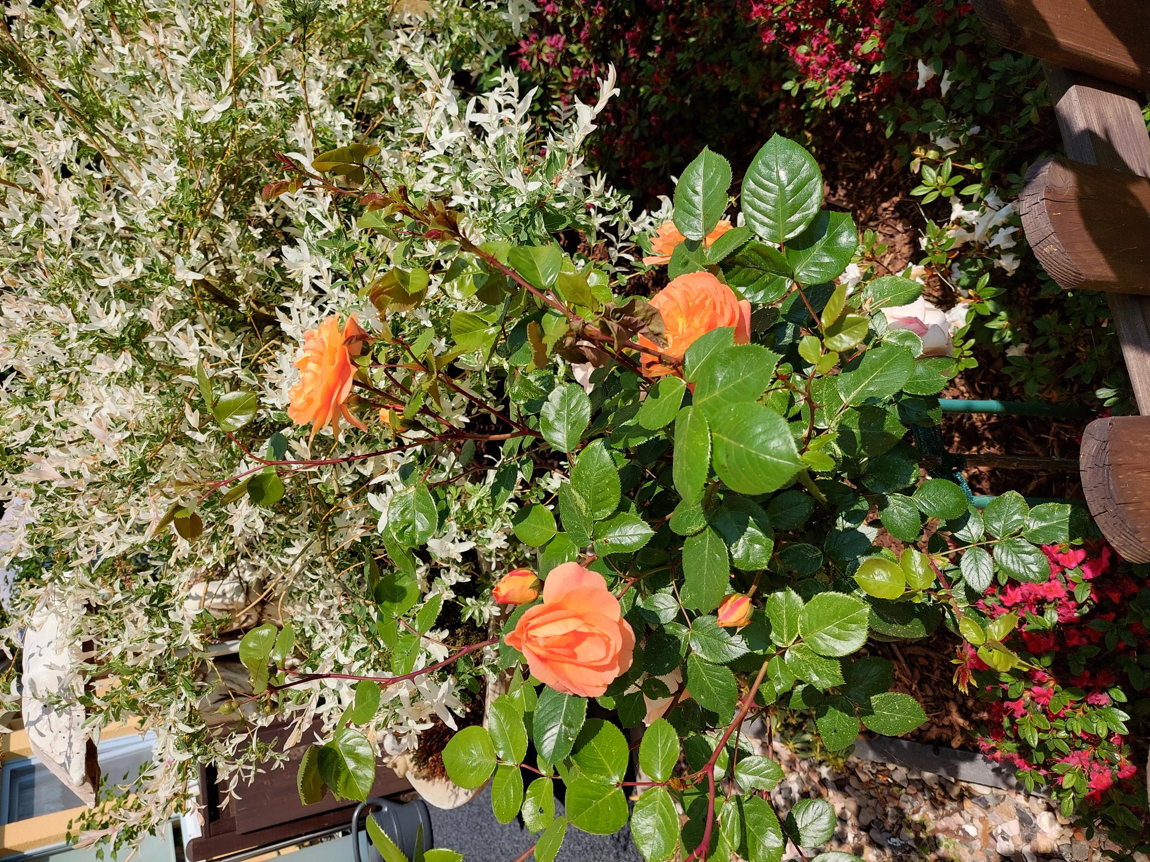 Un rosier qui rend joyeux par ses couleurs et sa floraison. Du bonheur en plus dans ma roseraie écologique ! /A rose that makes you happy with its colours and flowers. More happiness in my ecological rose garden!