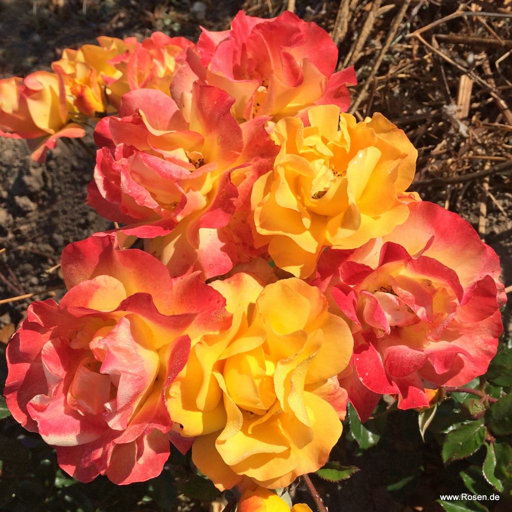 Da ich sie dieses Jahr frisch gepflanzt habe kann ich gutes Gewissens sagen: diese Rose ist Hitzefest! Die Blüten halten die heiße Sonne diesen Jahr bestens Stand ohne Verbrennungen. Mansche Blüten sind knallig gelb und gleichzeitig auch welche die weiter fortgeschritten sind in hell Pastellfarben gelb mit rot,rosanem Rand ! Was für farbübergänge!