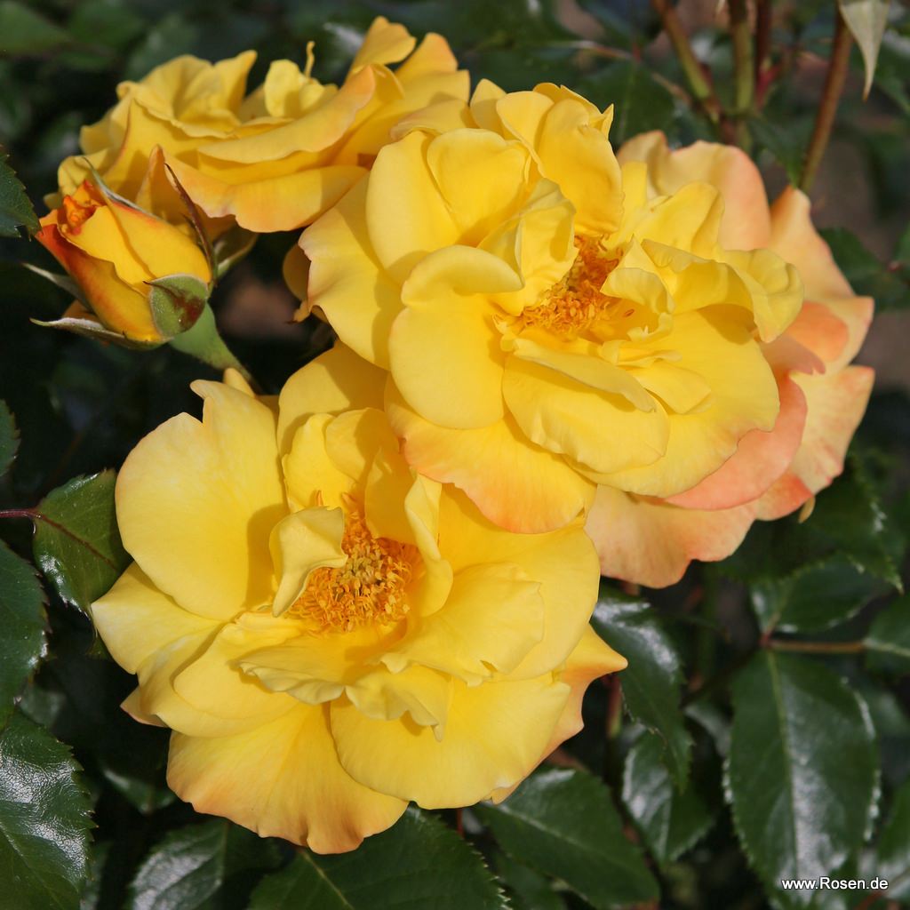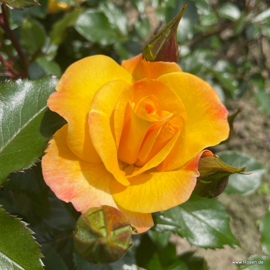 Der Hochstamm kam hier gut verpackt und in einer exzellenten Qualität an, das Blattwerk drunkelgrün-glänzend und einiges an Knospen waren schon vorhanden. Die Vorfreude dass diese sich bald öffnen würden, war wie das Warten auf ein besonderes Geschenk, sie taten es dann in einem leuchtenden Gelb mit einem Hauch Rot am Rande, später dann der Übergang in ein helleres Pastell, dieser Anblick der Farbübergänge der sich nach und nach öffnenden Blüten, ist einer auf dem man auch gerne länger verweilt. Es ist wirklich eine wunderschöne Rose und ich freue mich sie zu haben.