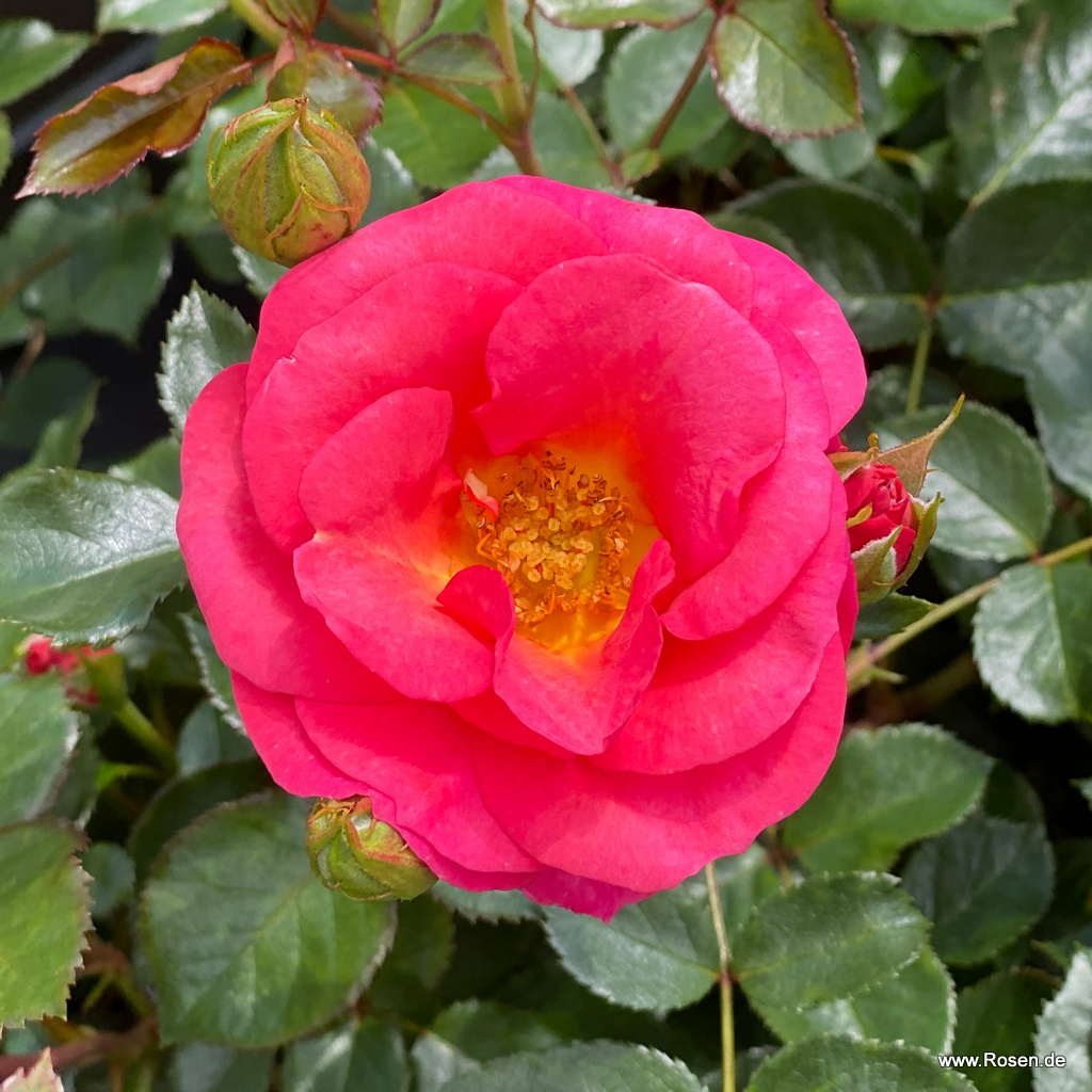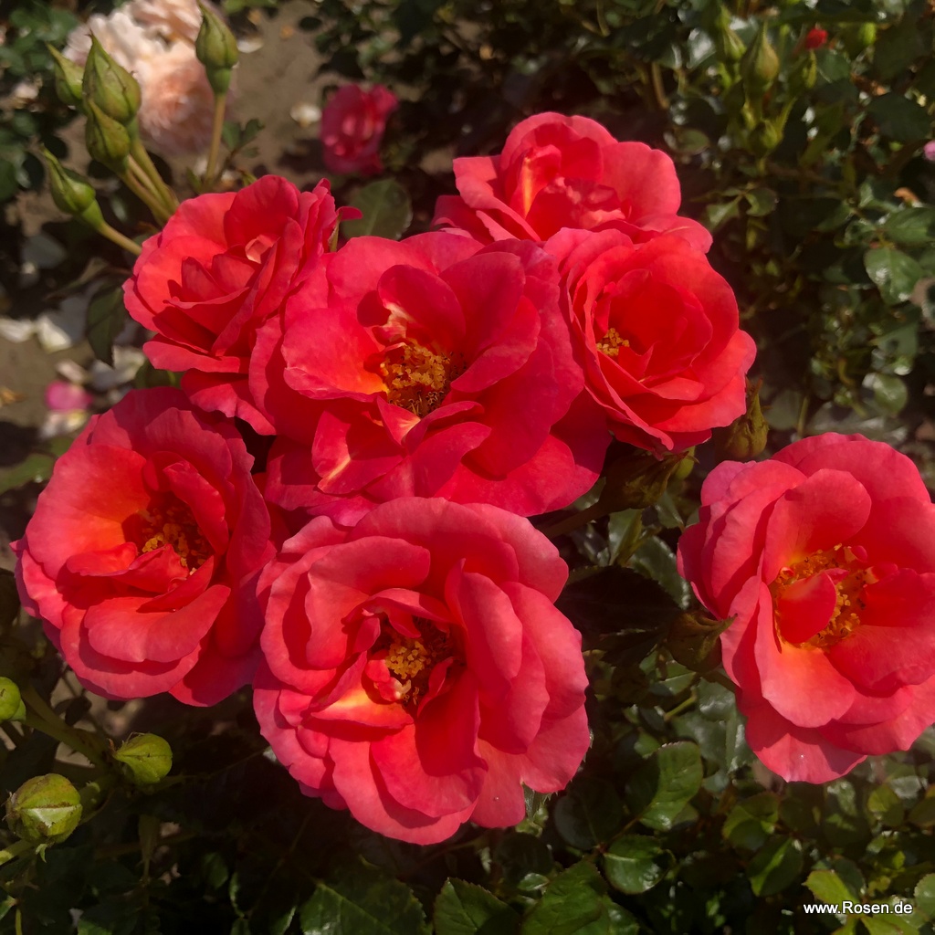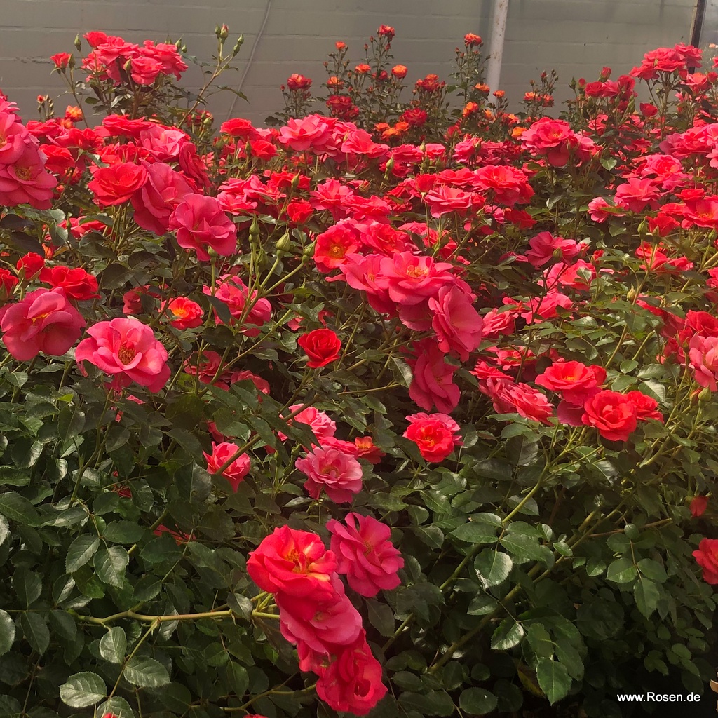 Dense bushy and floriferous Floribunda with slightly double blooms and therefore insect friendly blooms in a warm colour tone between Orange and Pink. Due to high disease resistance multiple utilisation possible from mass planting, mixed borders or planters.