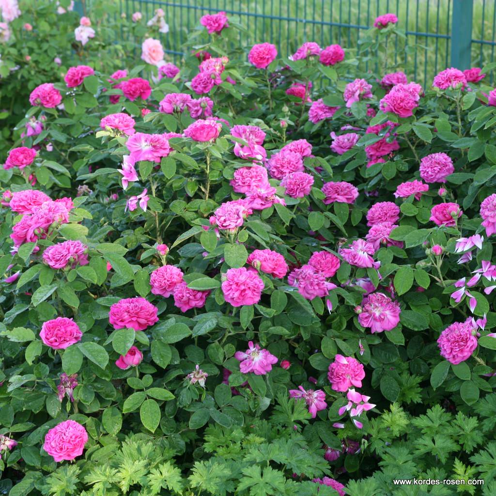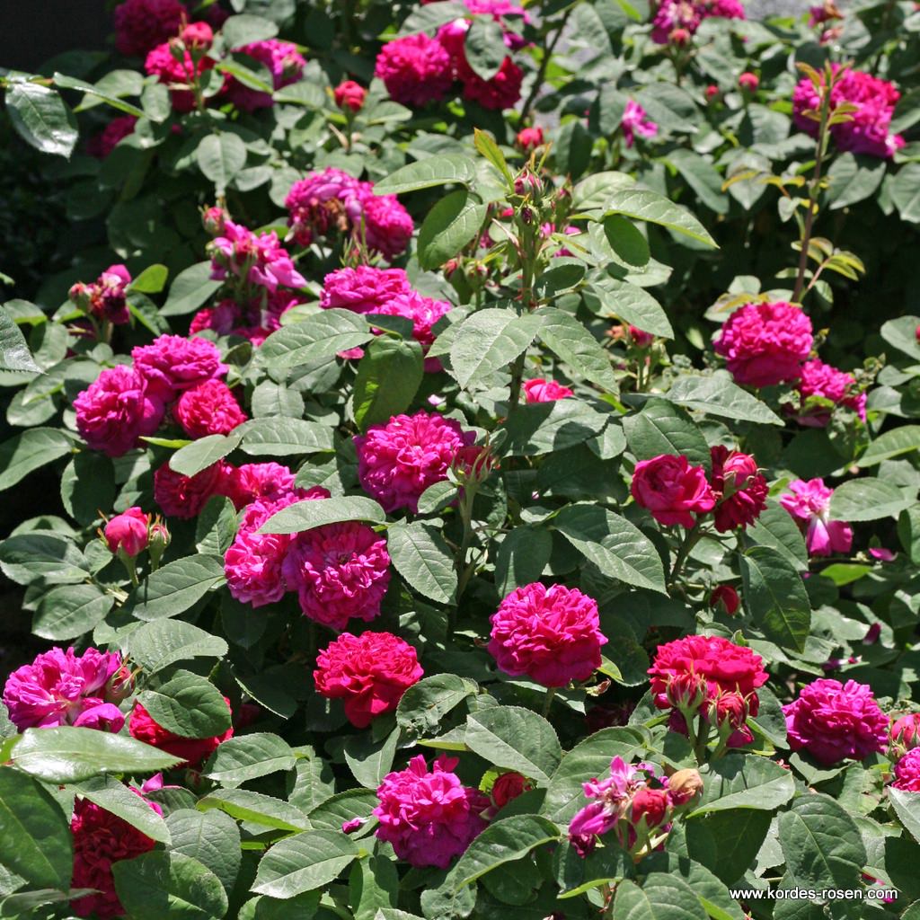 This rose offers everything you can expect from an 'old rose': recurrent blooming, strong fracgrance, robustness, winter hardiness and a compact growth.Good for any landscape applications, also for hedges and tubs.