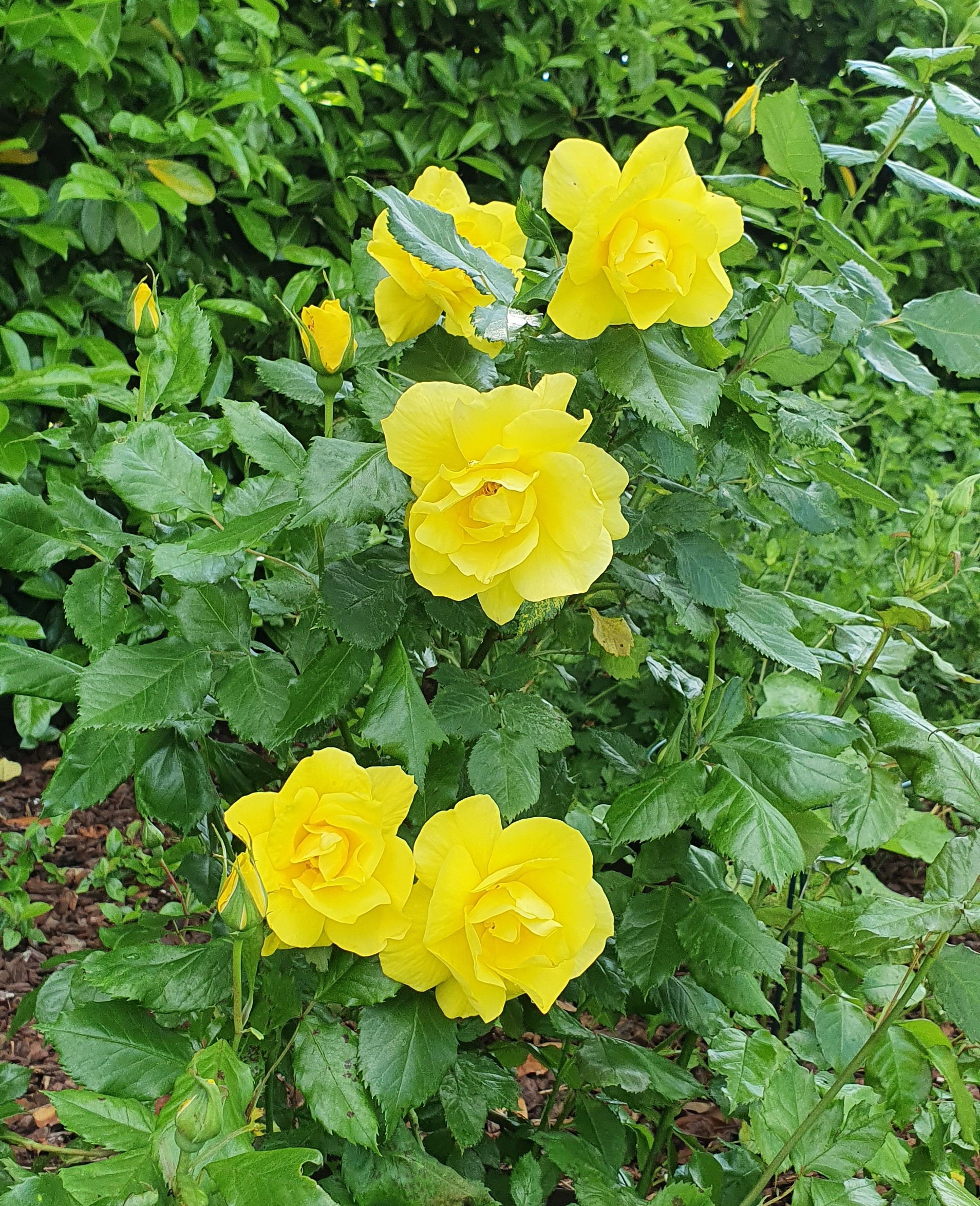 Unermüdlich blühende und toll durftende Rose, das Gelb verblasst auch nicht im Abblühen. Nachteil: Ich habe sie auf einer Südböschung vor dem Haus stehen, vollsonnig. Abwechselnd Regen und große Hitze mag sie gar nicht, heuer stand sie wochenlang ohne Blätter da - die waren von Sternrußtau befallen und abgefallen. Werde Friesia schweren Herzens gegen eine Sorte mit unempfindlichen Laub austauschen.