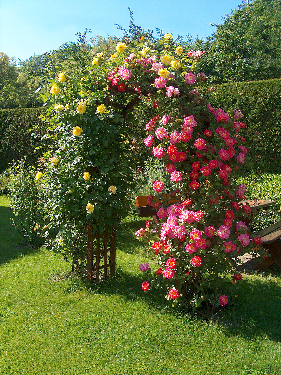 Sie hat diesen bereits im 1. Wuchsjahr erobert, läßt sich wunderbar in Form schneiden und überzeugt jedes Jahr mit ihrer Blütenfülle und Blattgesundheit. Das Highlight in meinem Rosengarten!