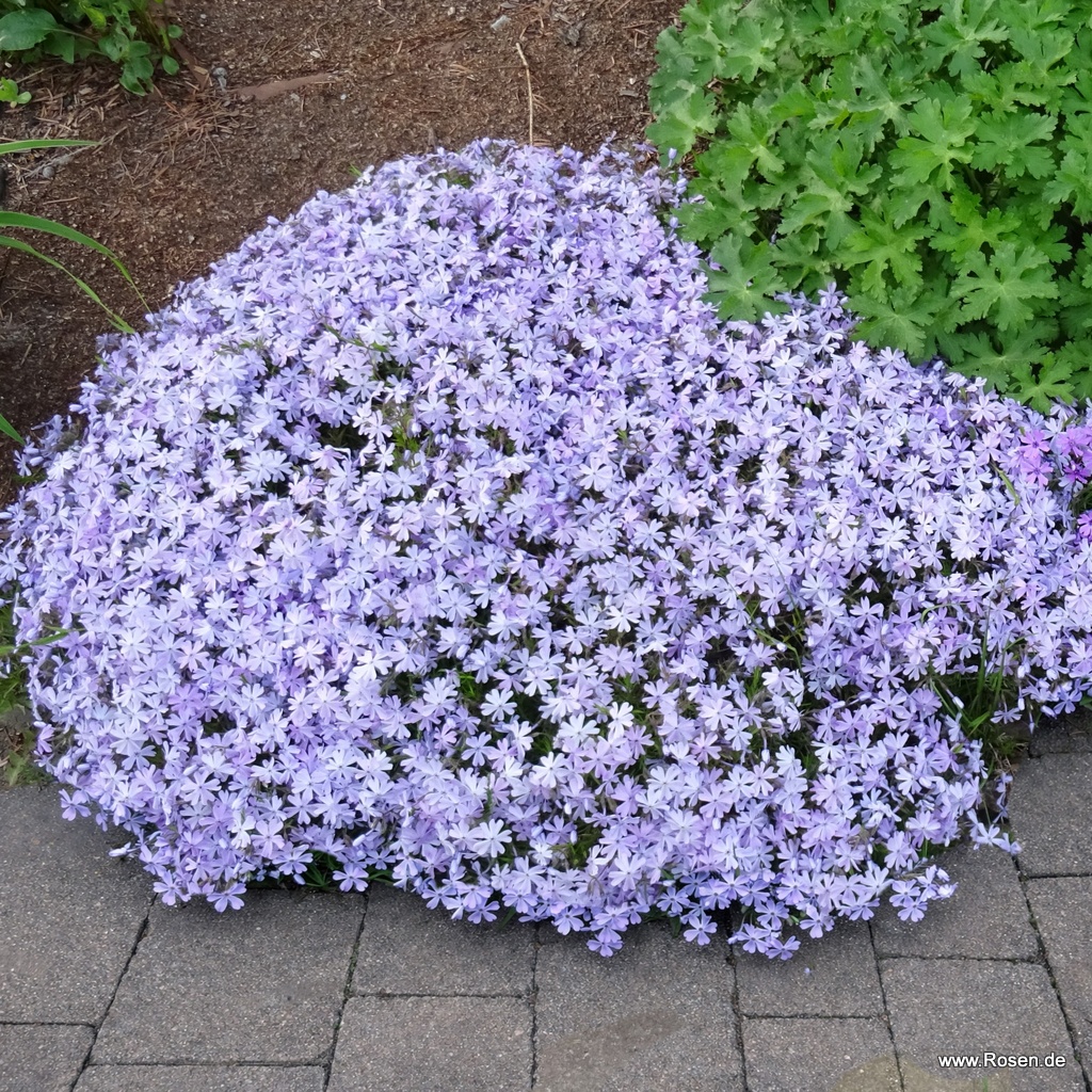 Die Garten-Teppich-Flammenblume Emerald Cushion Blue ist eine immergrüne flachwachsende Sorte, die dichte Matten bildet, die im Sommer über und über mit Blüten bedeckt sind. Der Polsterphlox ist eine sehr beliebte Steingartenstaude, die in keinem Steingarten fehlen sollte. Die blau-violetten Blüten sehen wirklich aus wie gemalt.