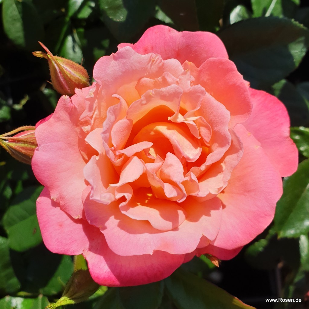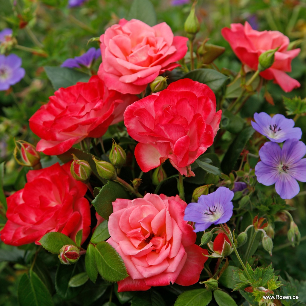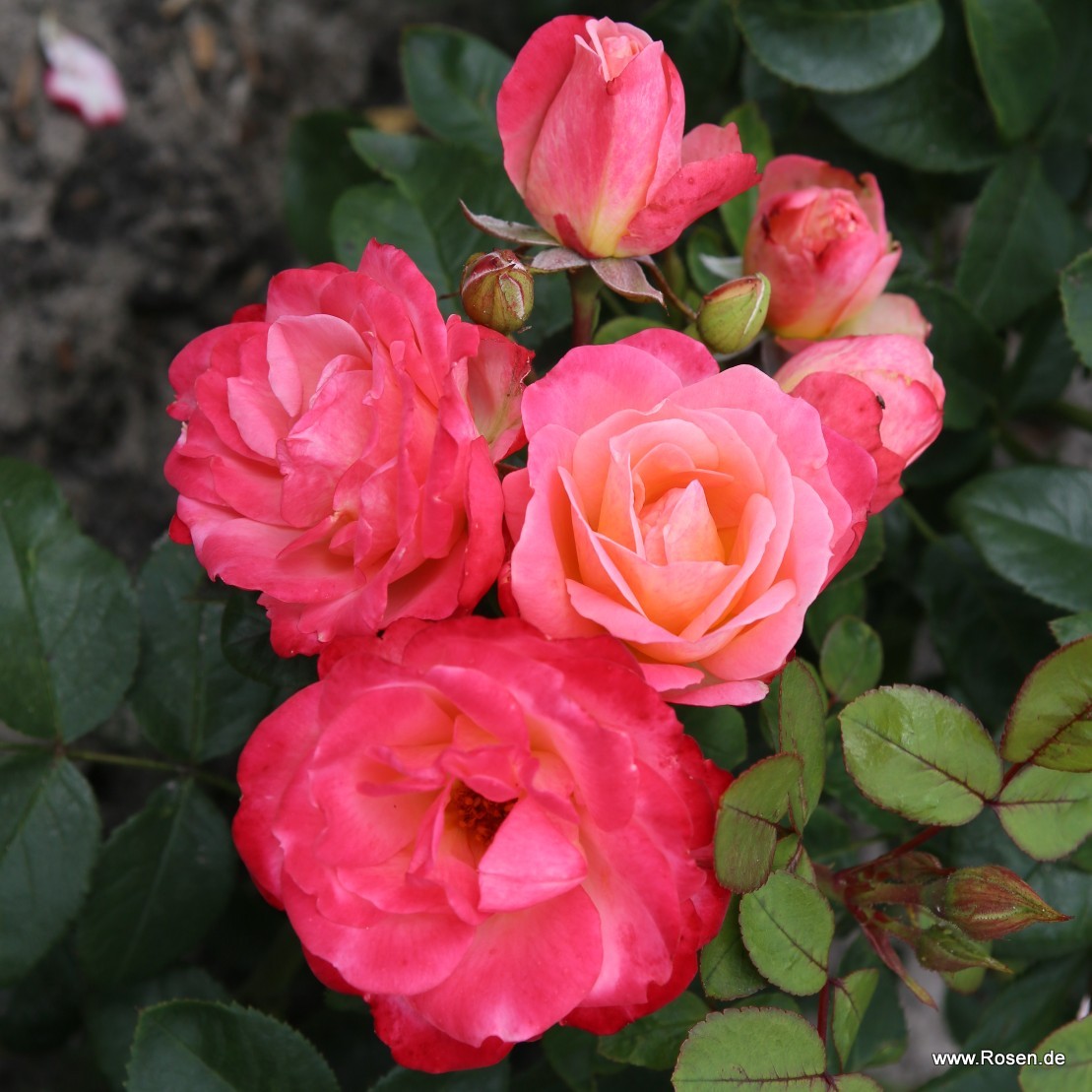 Rosiers a massif très riche avec une excellente santé des feuilles (prédicat ADR 2019), pousse tres vite, même sans coupe d`été. Des fleurs semi-remplies dans de petites doldes montrent un jeu de couleurs inhabituel entre l’apricot et le rouge cerise. Utilisable dans de nombreuses situations de jardin.