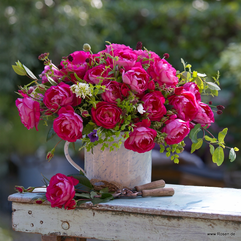 La nouvelle variété blütenRhein® est un petit rosier arbustif dressé et buissonnant avec des coquilles florales légèrement remplies - de couleurs vives contrastant magnifiquement avec le feuillage sain, vert foncé brillant. Nouveauté respectueuse des insectes en coopération avec la ville rose d’Eltville sur le Rhin.