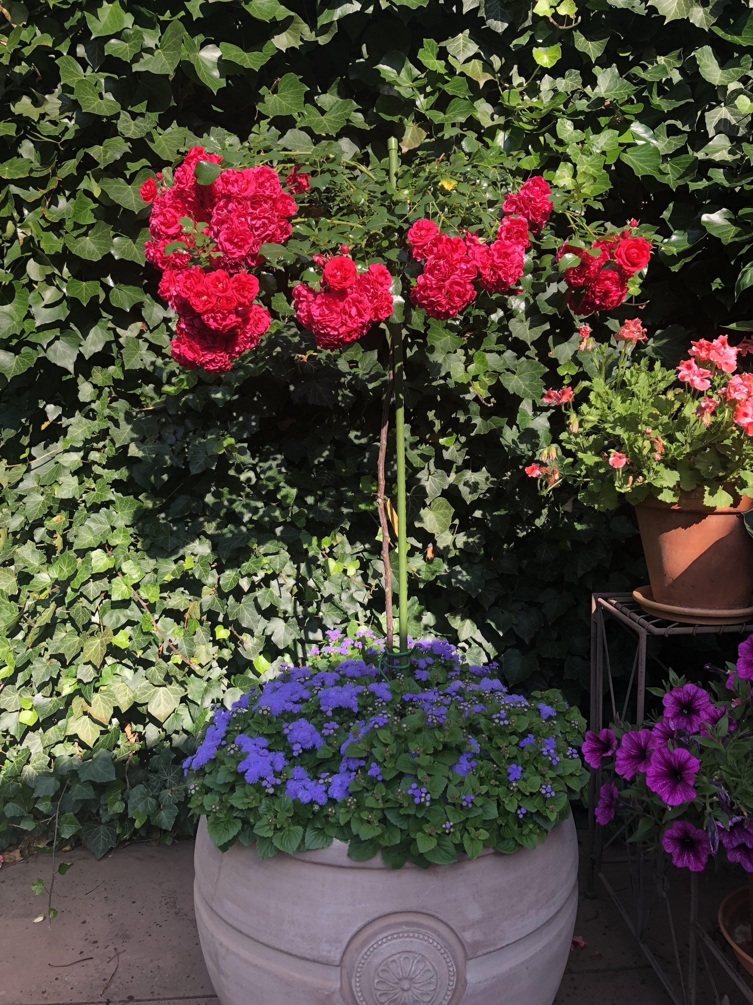 Rosier incontournable. Ce rosier est très florifère et remontant. Un rosier tige que tous les visiteurs admirent dans ma roseraie écologique. /An essential rose. This rose is very prolific and reflowers well. A standard rose that all visitors to my ecological rose garden admire.