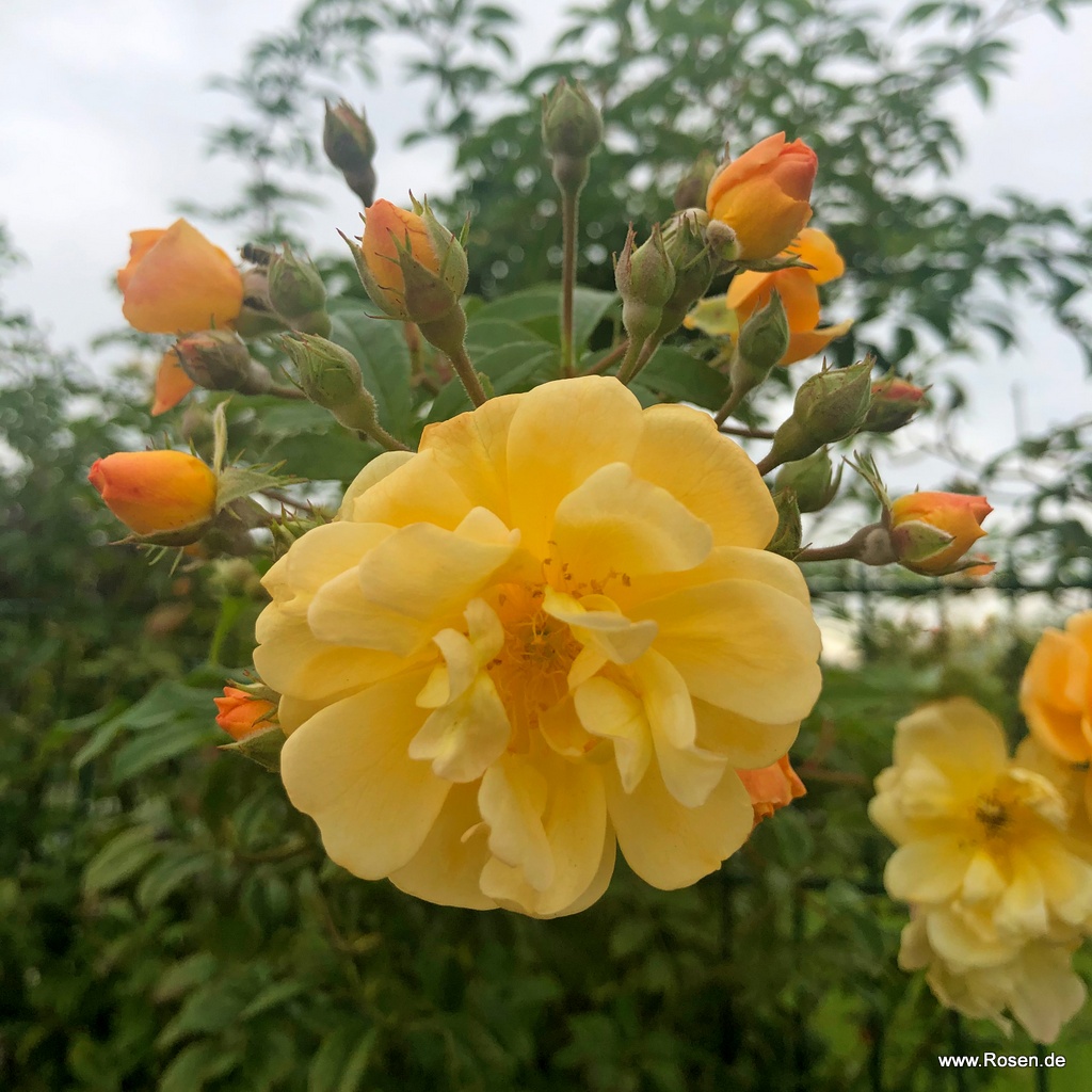 Rosier rambler ( rosier liane ) très moderne à croissance verticale d’une hauteur maximale de 180 cm. Fleurie et riche en ombelles. Sunny Siluetta® est particulièrement adapté aux petits jardins, balcons et terrasses.
