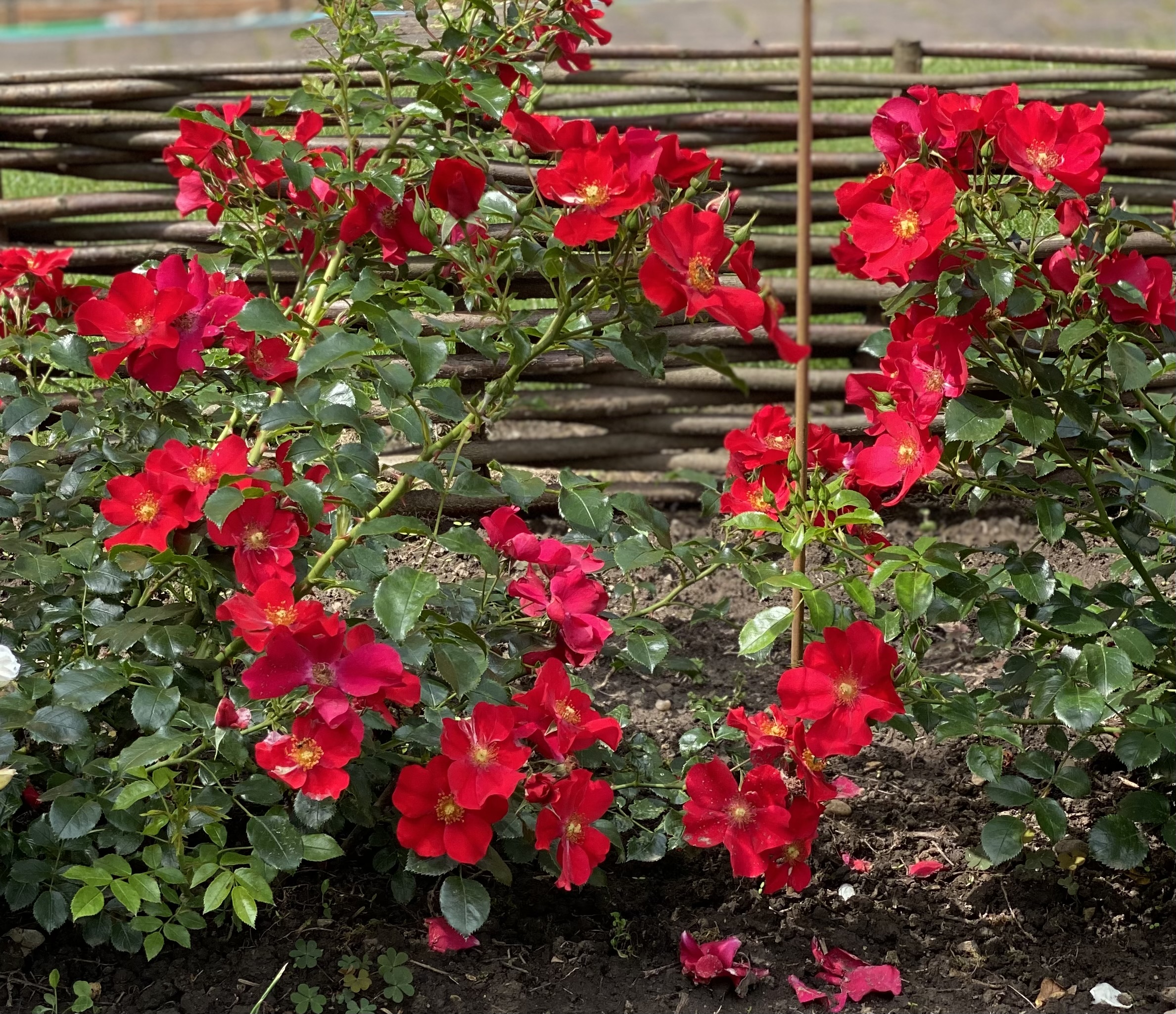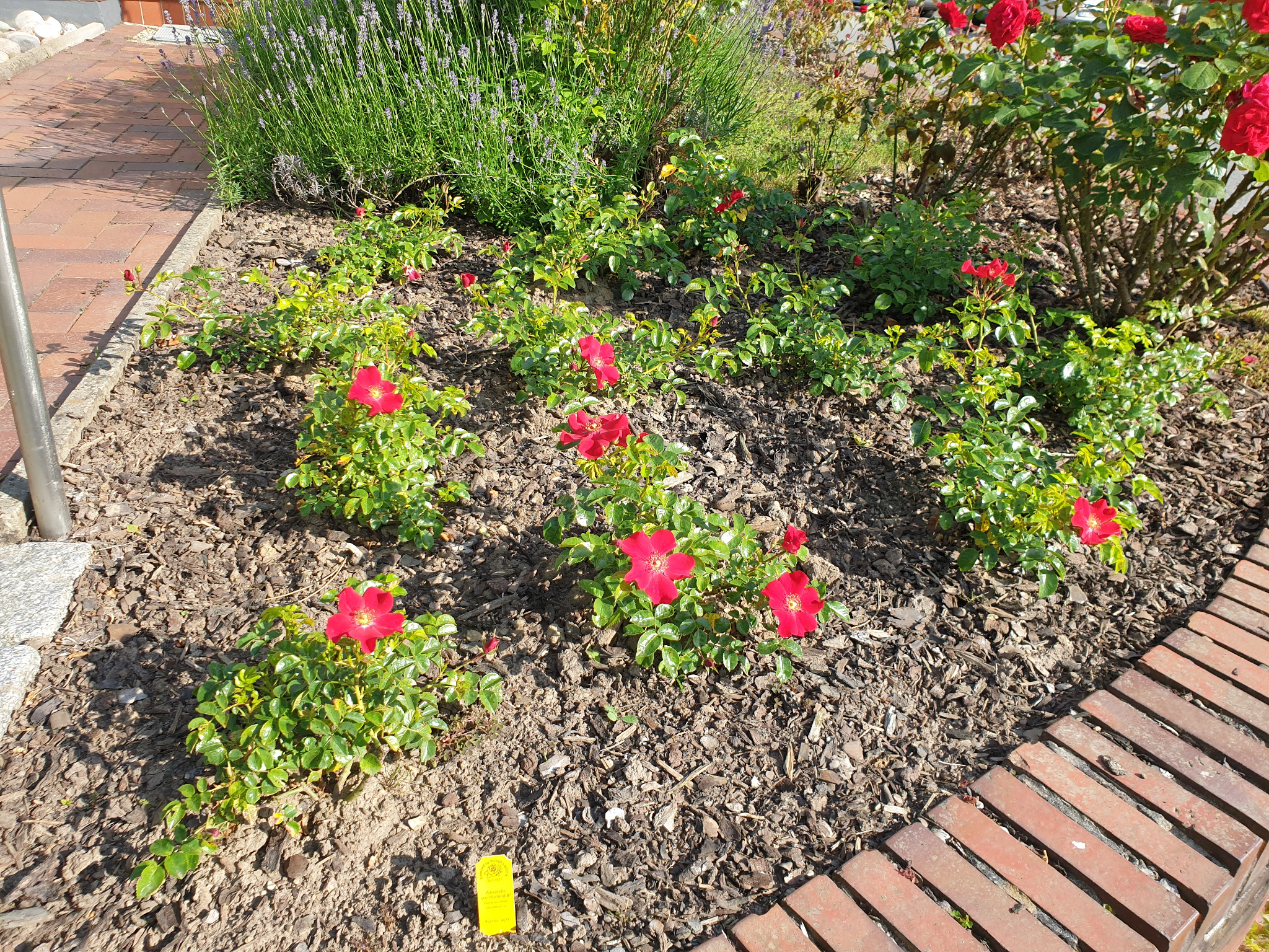 Die Rosen ließen sich sehr gut aus dem Plant-o-fix Behältern entnehmen und passten perfekt in die mit dem Erdlochbohrer angelegten Pflanzlöcher. Alle Pflanzen trieben im Früjahr reichlich aus, haben sich in der ersten Saison schon schön breit gemacht und blühen bis in den Oktober hinein.