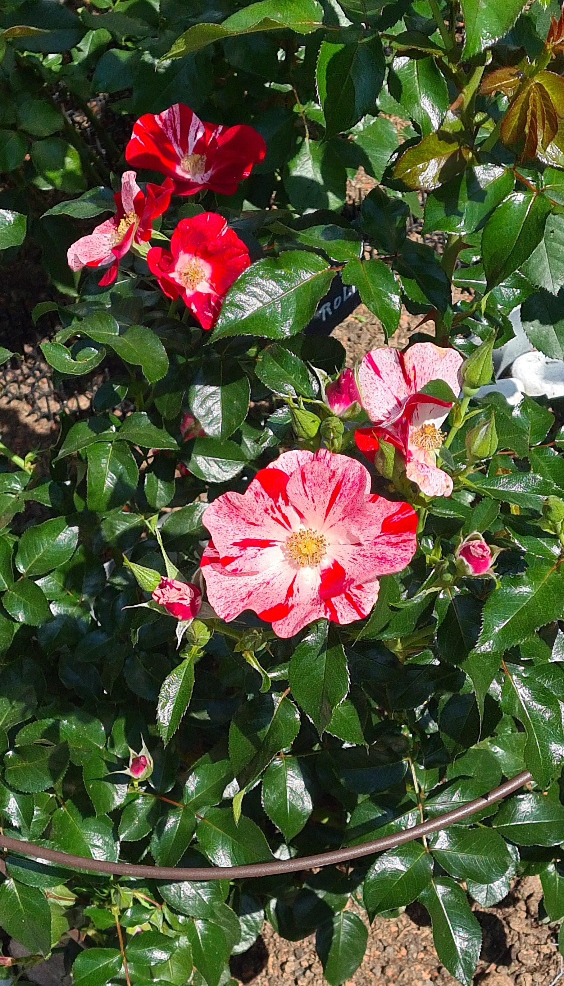Un rosier joyeux et impressionnant. Feuillage très sain. Rosier fleuri non stop dans ma roseraie ! Bravo ! /A cheerful and impressive rose. Very healthy foliage. Non-stop flowering in my rose garden! Well done!