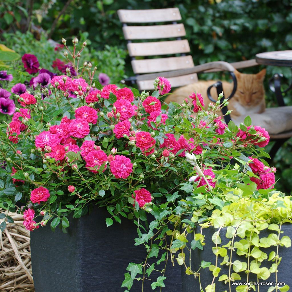 Rosier miniature au port très compact, d'un coloris violet intéressant, qui ne pâlit pas. D'une santé formidable, un enrichissement pour tout jardin, balcon ou terrasse. ADR 2008.