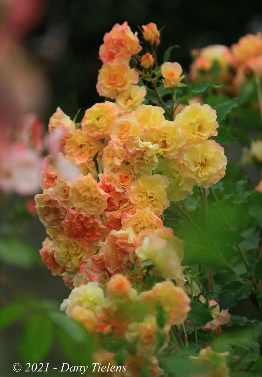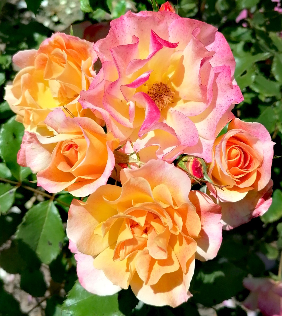 Innerhalb 4 Jahren hat sich diese Rose so wundervoll entwickelt, daß sie weithin sichtbar den Garten verschönert mit gefühlt hunderten Blüten. Sie blüht unermüdlich in rosa-gelb-orangen Farben und kommt mit vielen Wettersituationen gut zurecht.