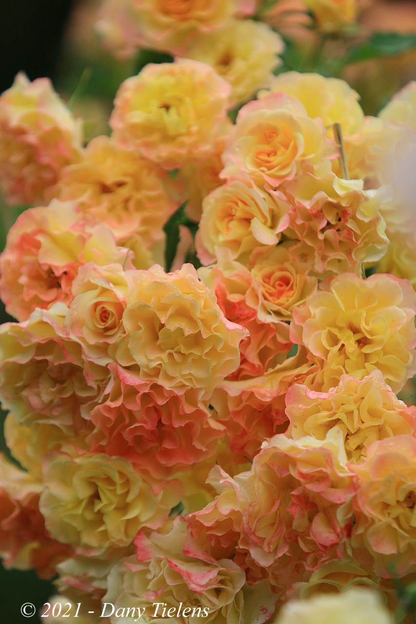 Diese Strauchrose ist ein Muss für Alle, die den Farbrausch mögen. Gelb und Rosa harmonieren hier ganz wunderbar. Die zahlreichen, gefülten Blüten musste ich nach dem Regen etwas abstützen. Diese Rose ist ein wahrer Blickfang. Man müsste Platz für ein ganzes Rosenfeld für diese wunderbare Rose haben.