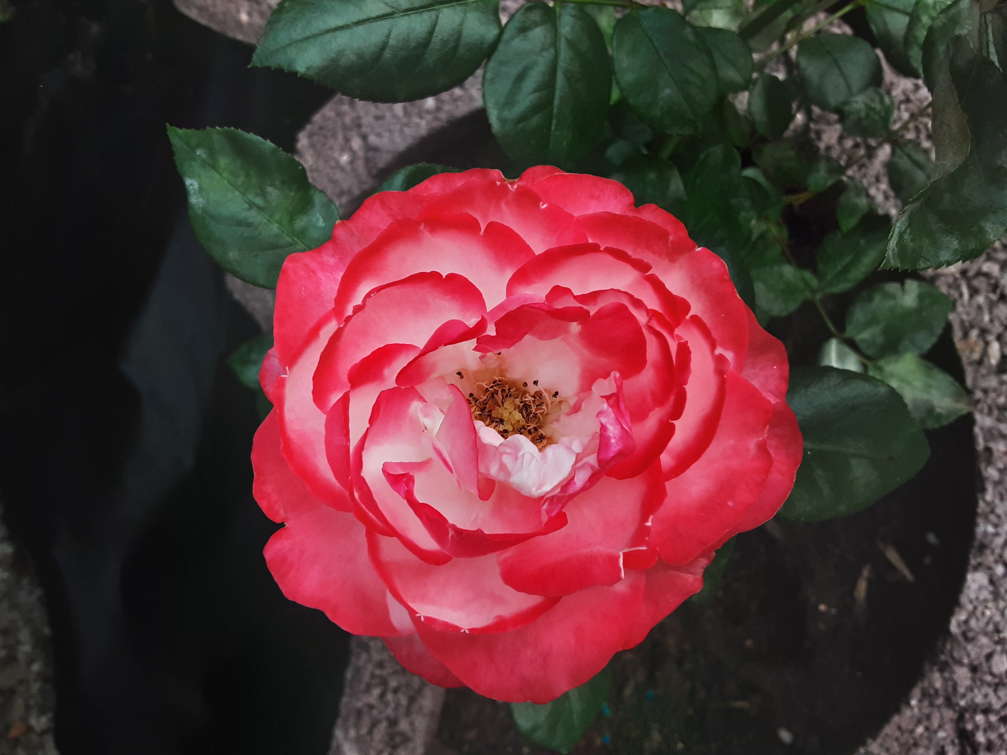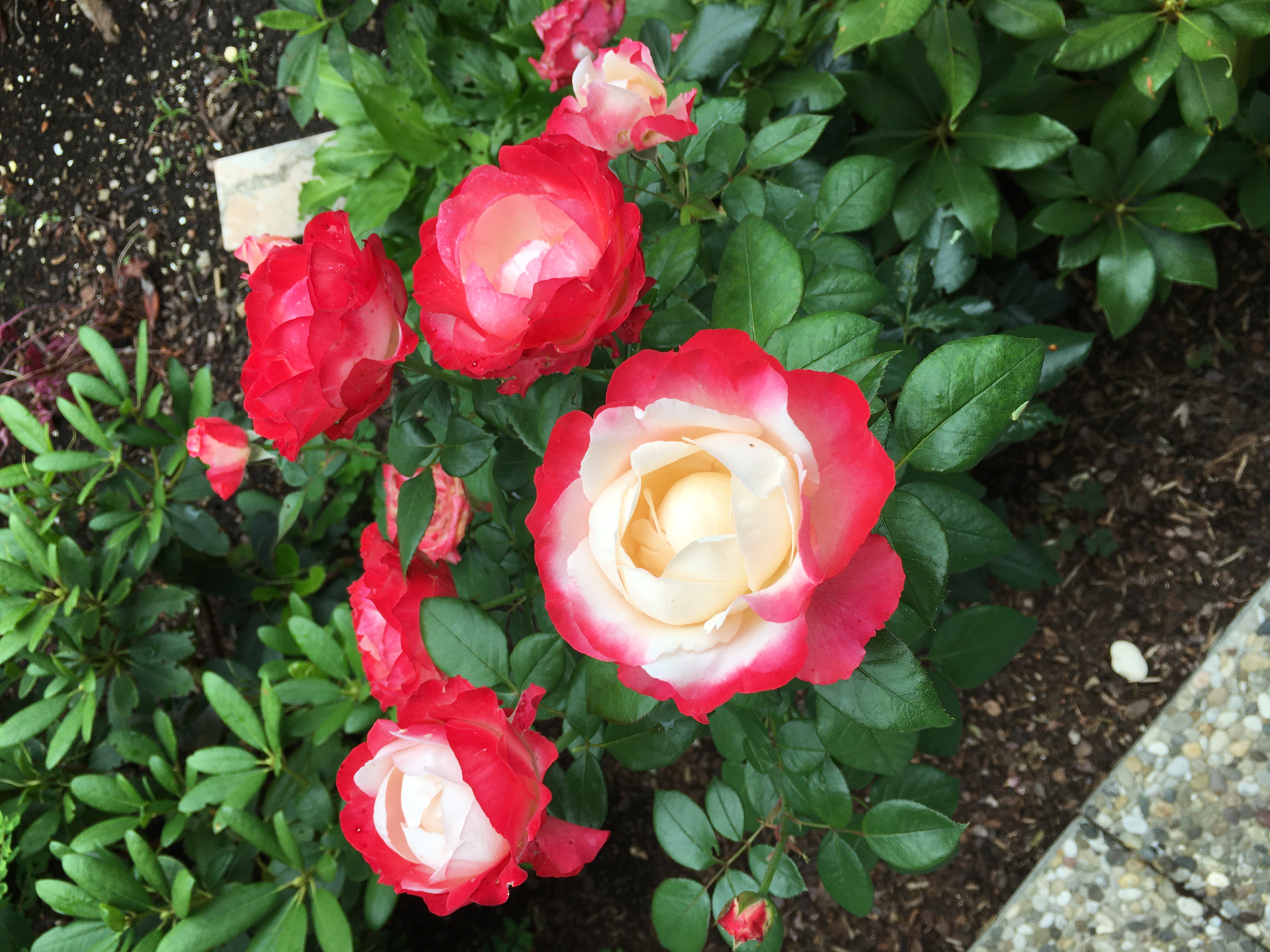 Nostalgie est une hybride de thé bicolore, qui séduit par son parfum et son charme comme fleur coupée. La fusion insolite de rouge et blanc est souligné par le feuillage vert foncé brillant.