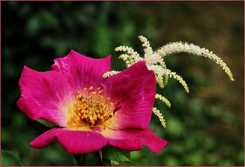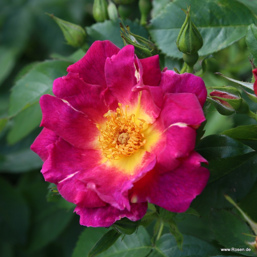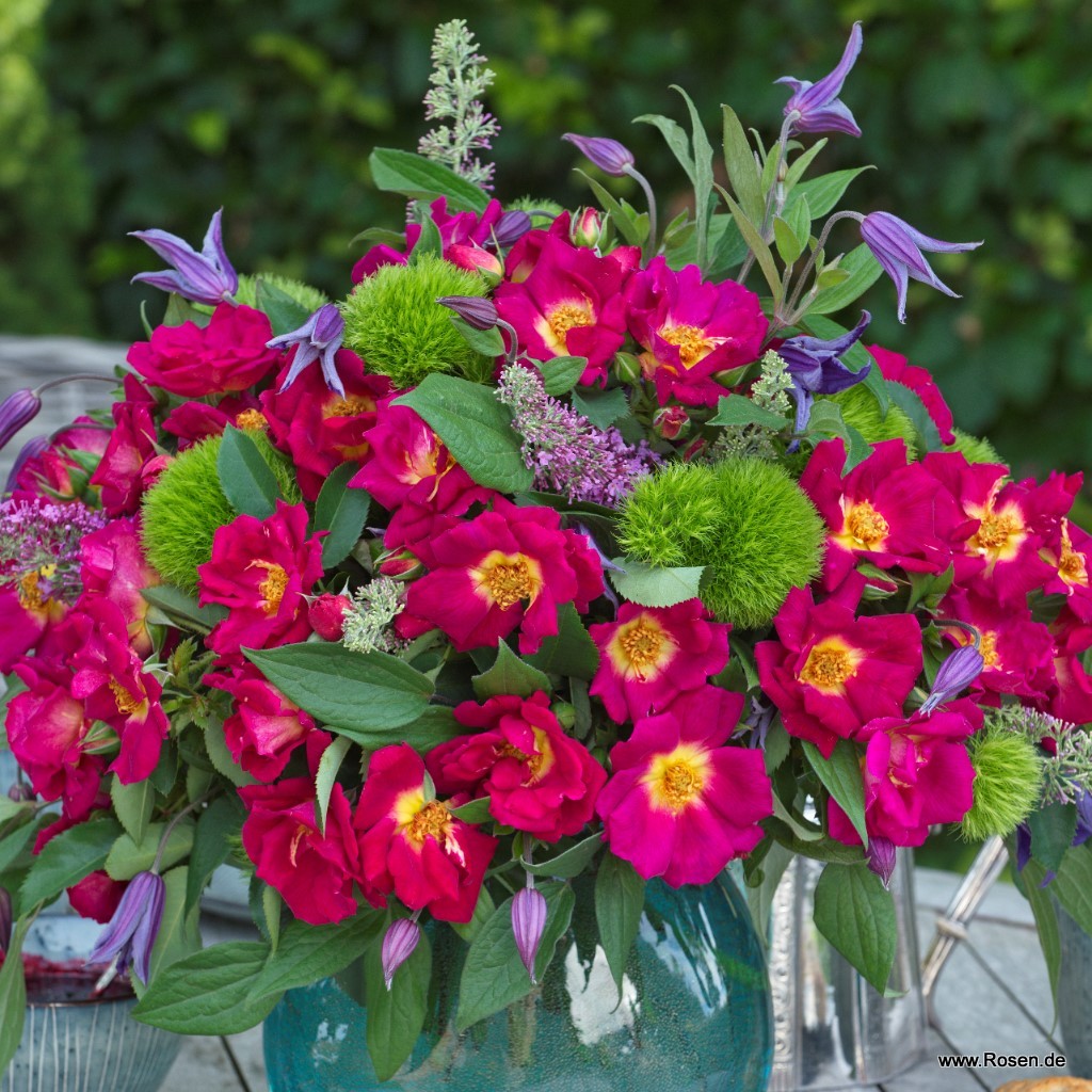 Diese Kleinstrauchrose berührt meine Sinne ungemein. Sie hat eine wunderbare dunkelpinke Farbe und blüht vollkommen gesund ohne mein Zutun im Freiland immer wieder den ganzen Sommer bis zum Herbst.