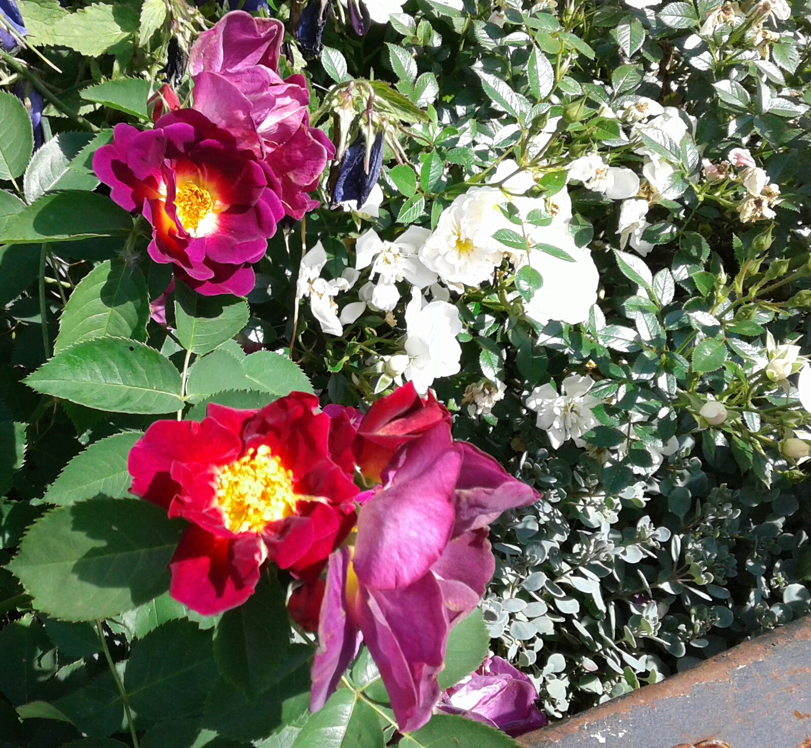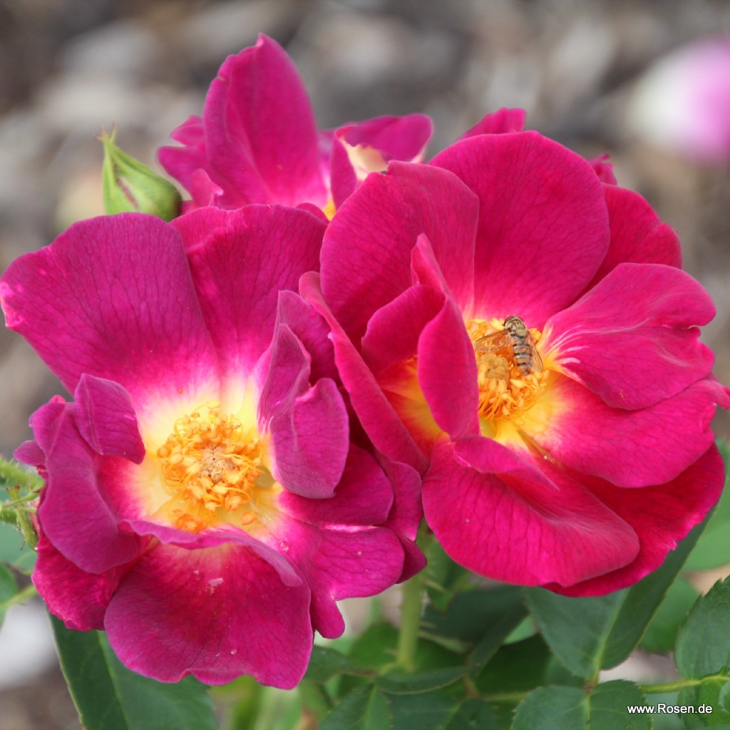 Diese kleine Rose macht sich sehr gut. Sie muss mit dem Randplatz eines aufgeschütteten Schotterbeetes zurechtkommen, wächst zudem in einem Betonpflanzstein, aber das alles scheint ihr nichts auszumachen. Sie wächst gesund und munter, blüht zuverlässig, ist nie krank und übersteht harte Fröste unbeschadet. Zudem locken ihre offenen Blüten Bienen an. Mehr kann ich von einer Rose nun wirklich nicht erwarten.