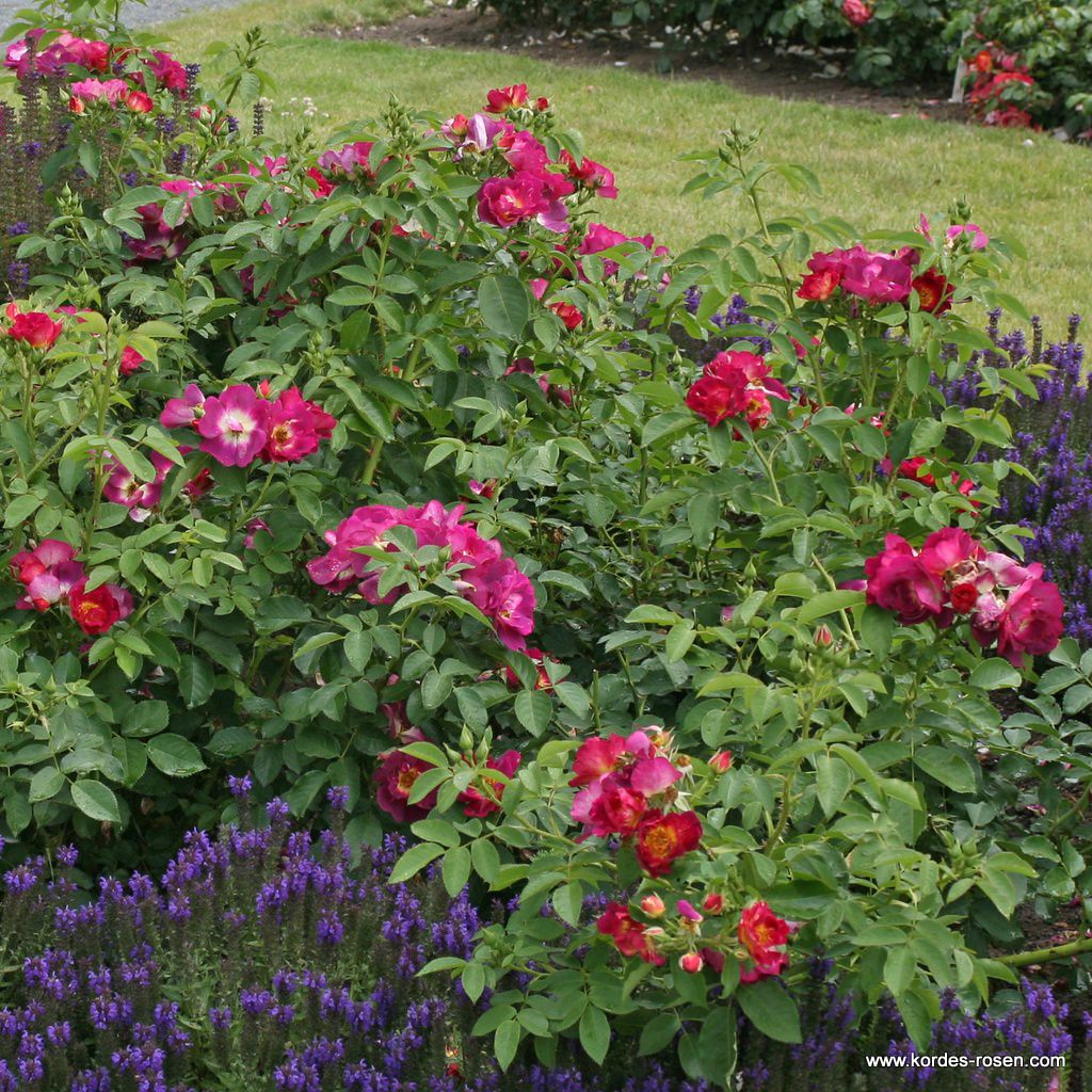 Weg der Sinne® ist eine sehr farbintensive Sorte, mit reichem Flor und ausdauernder Nachblüte. Leichter Duft, gute Blattgesundheit und besondere Farbgebung.