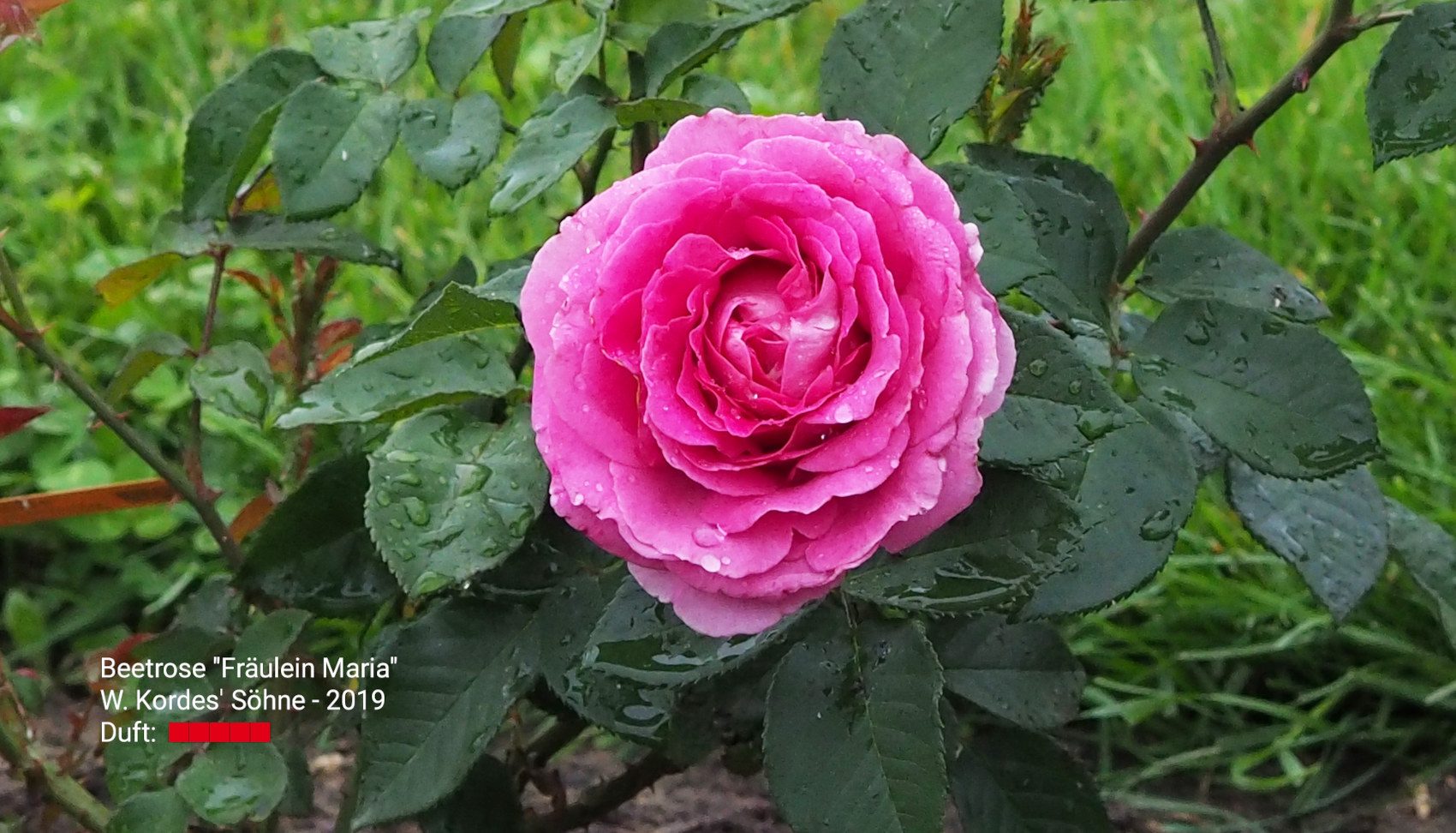 Fräulein Maria duftet wunderbar. Die Blüte ist gefüllt und groß, oft aber zu schwer für den dünnen Stengel, sie beugt sich oft., sieht dann schlapp aus. Sie könnte gern auch länger als 4 Wochen blühen. Mit erneueter Blüte im gleichen Jahr tut sie sich schwer.