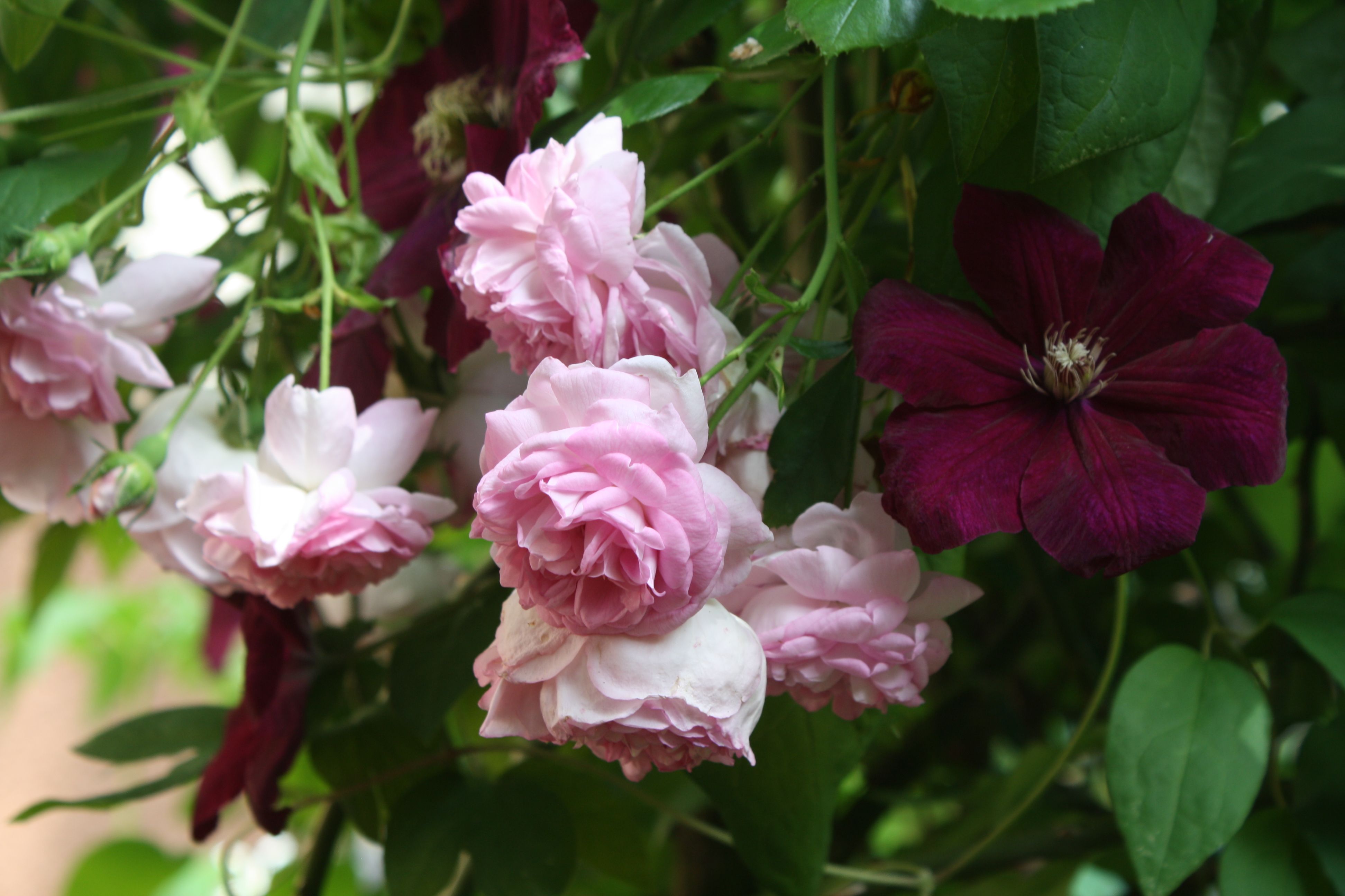 Jasmina zusammen mit der Clematis Rouge Cardinal ist jedes Jahr ein Traum