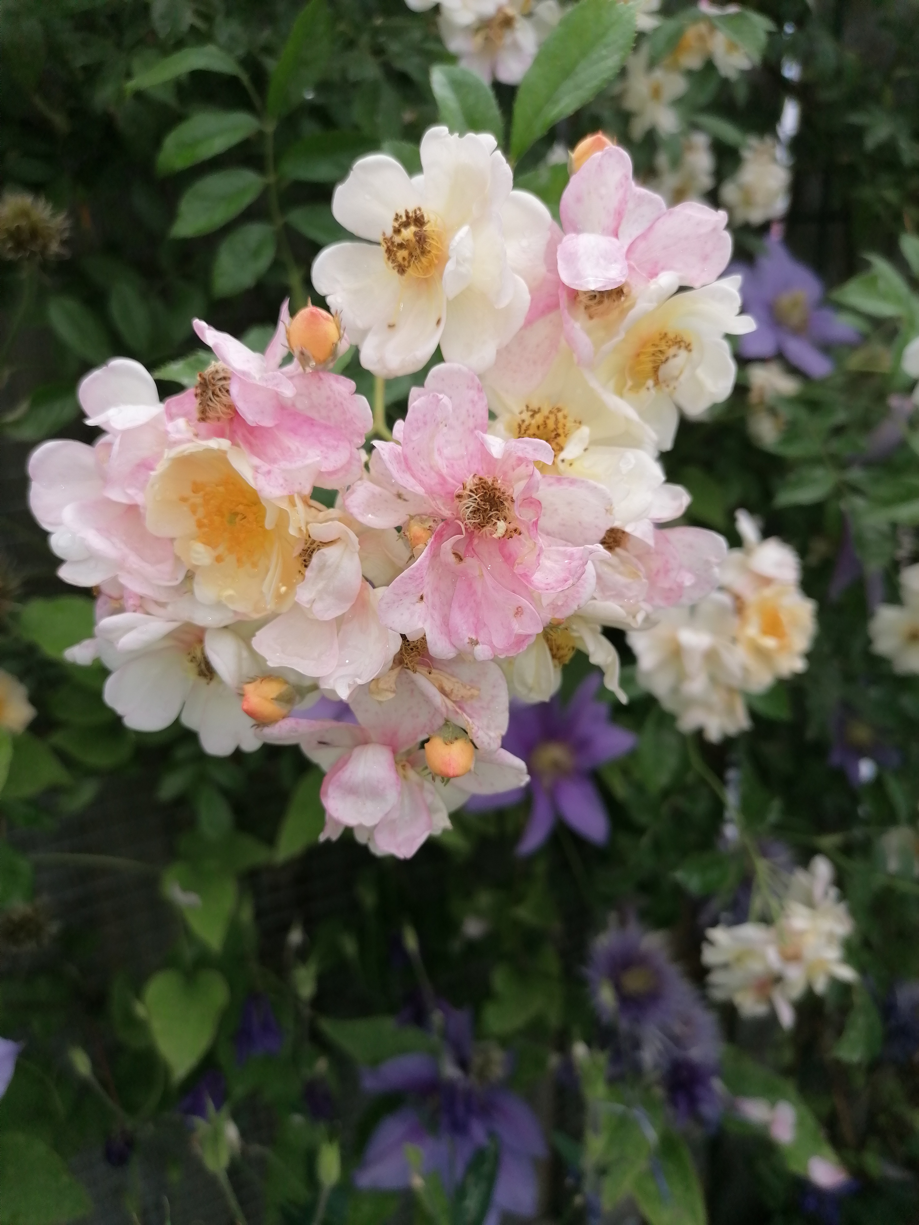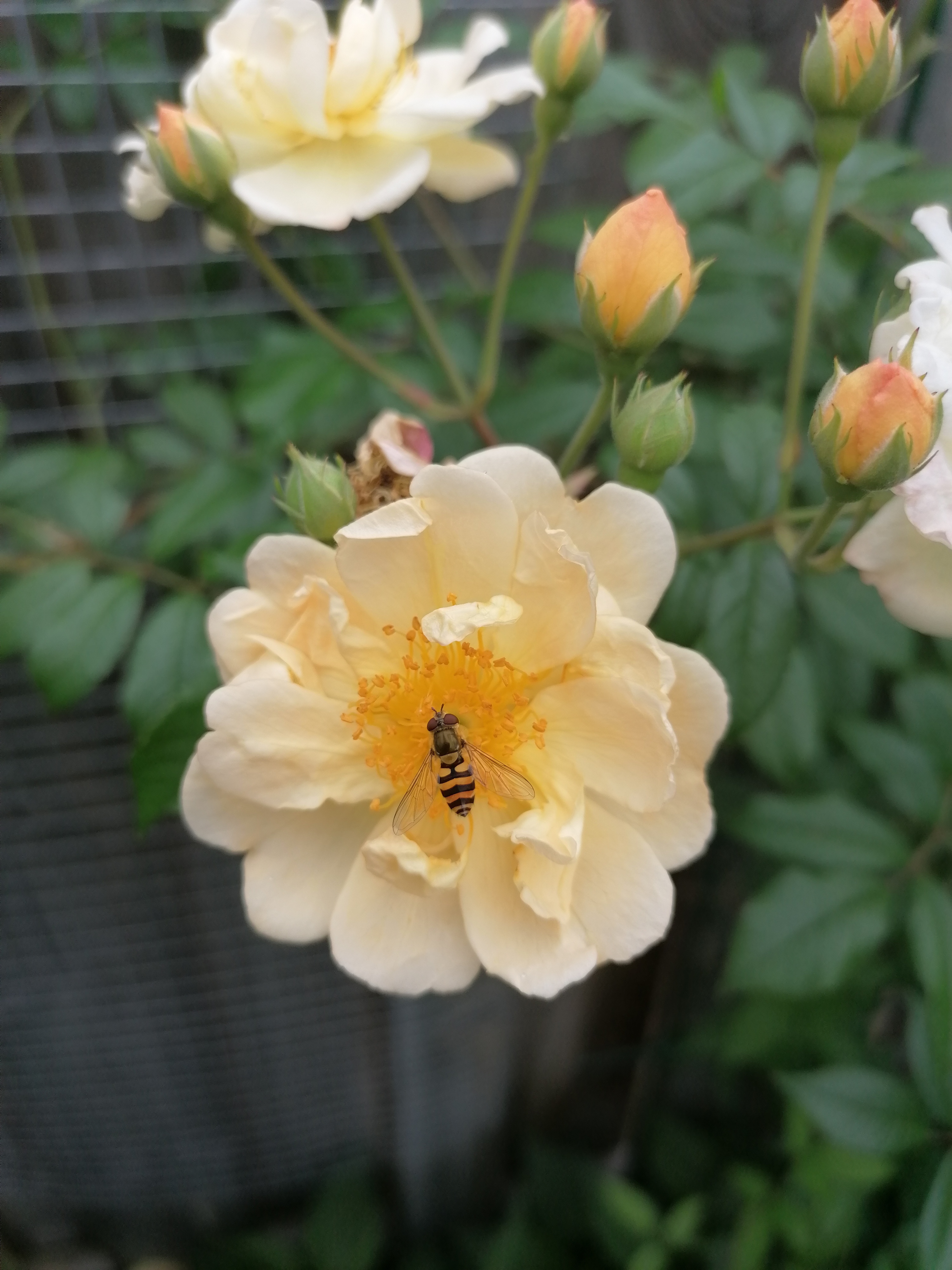 Habe mir vor einigen Wochen diese Rose in den Garten geholt. Nun hat sie die ersten zierlichen Blüten geöffnet. Ich bin verzaubert vom Charme und dem Farbwechsel. Auf jeder offenen Blüte sitzt eine Biene oder Schwebfliege. Eine wahre Bereicherung für meinen kleinen Reihenhausgarten.