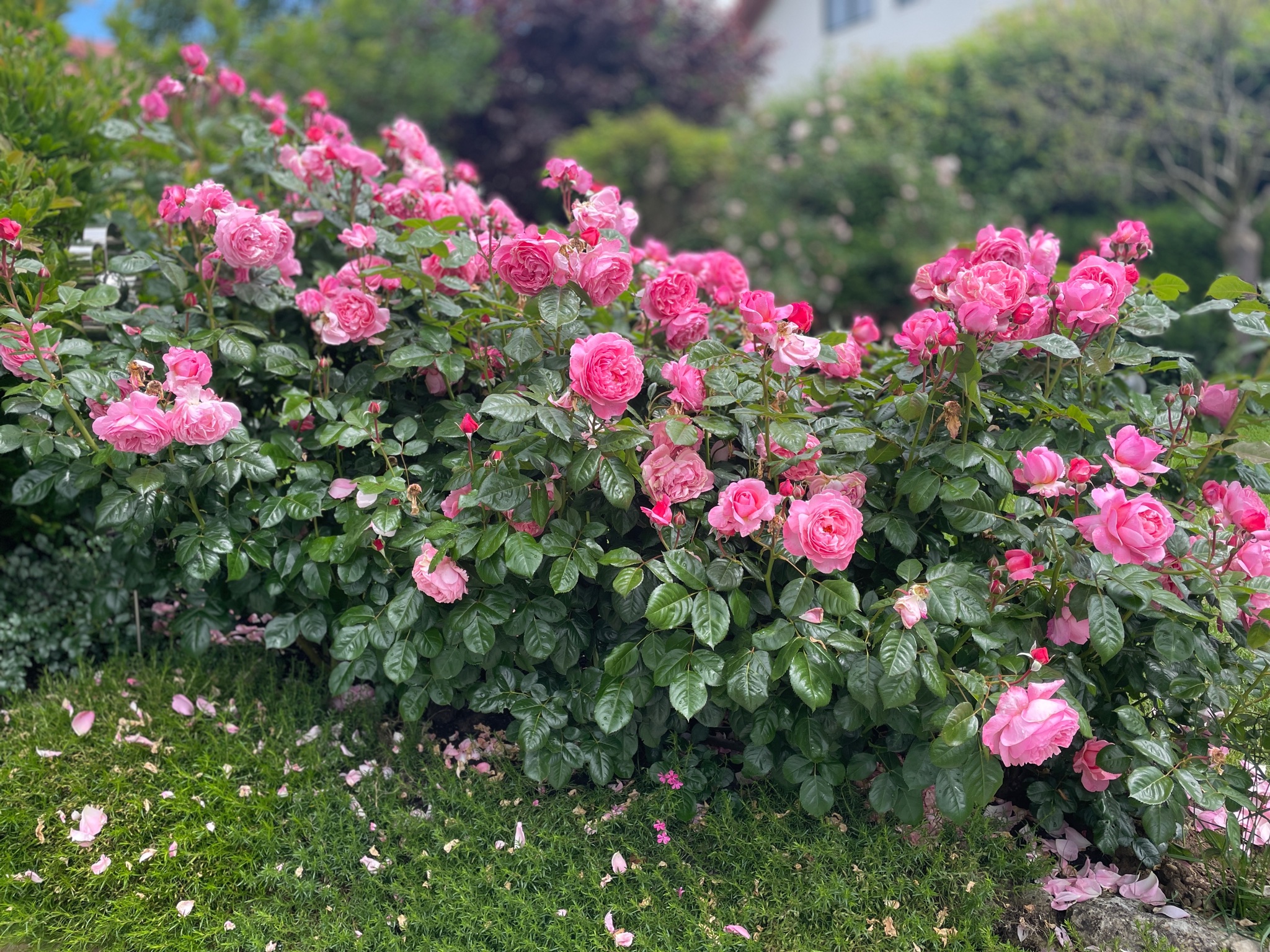 I can’t write well in German (sorry). Flora Colonia are my favorite and healthiest roses in my garden (out of 25). I’ll let my picture speak for itself.