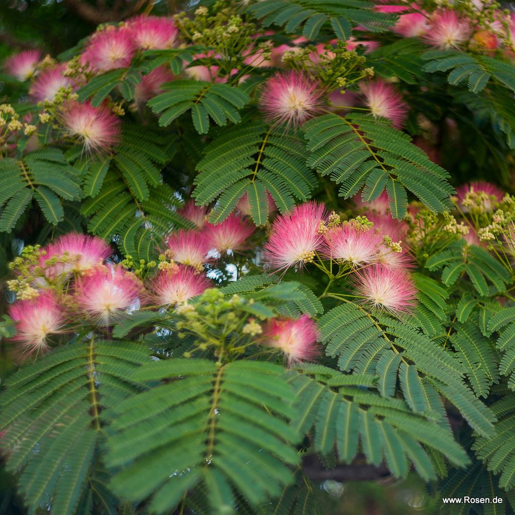 Der Schlafbaum - oder auch gerne Seidenbaum genannt - trägt seinen Namen auf Grund einer interessanten Eigenschaft: Die Pflanze rollt bei Nacht aber auch Trockenheit die Blätter zusammen – um sich zu schützen und Wasser zu sparen! Bitte beachten Sie, dass er dies auch auf dem Transportweg im dunklen Karton tut und geben Sie ihm anschließend genügend Zeit wieder "aufzuwachen". Die duftenden, pinselartigen Blüten sorgen im Garten für einen Hauch Exotik.