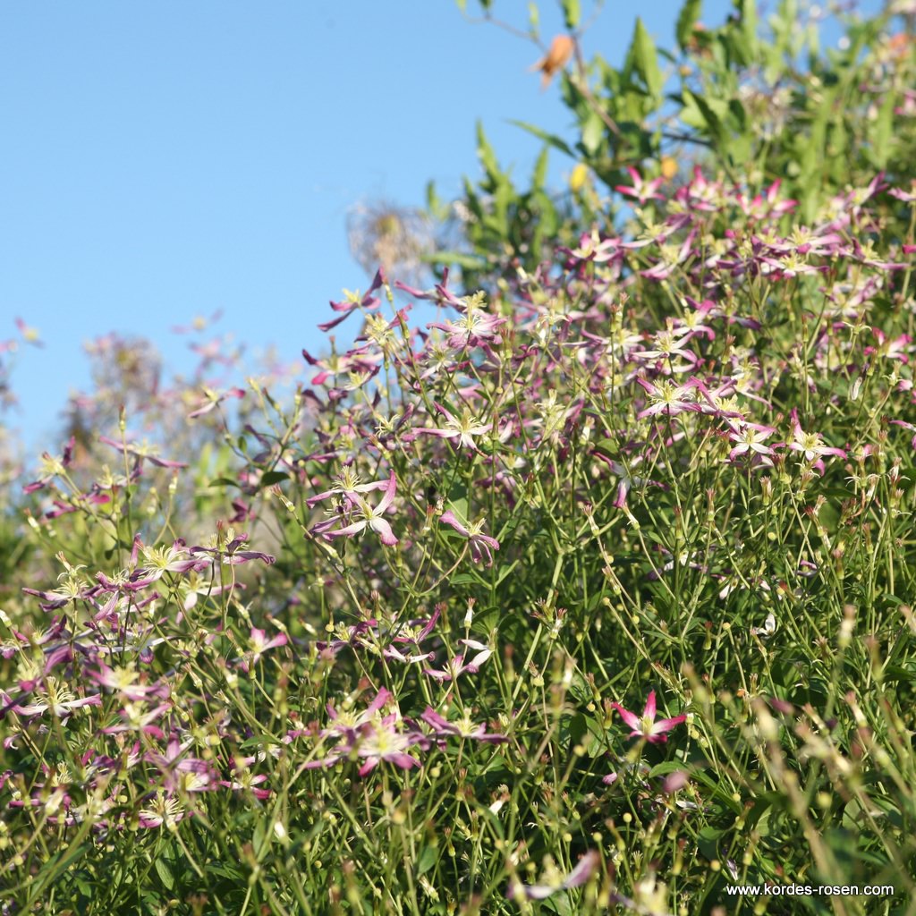 Ein Meer aus duftenden Sternchen bietet dieseSchönheit im Sommer. Mit einem angenehmen, nicht aufdringlichen Duft nach Vanille verzaubert diese Wildform jeden Gartenbesitzer. Sie ist perfekt zum Beranken von Zäunen, abgesägten Bäumen oder um Sitzplätze zu umschmeicheln.Resistent gegen die gefürchtete Clematis-Welke. Absolut winterhart.
