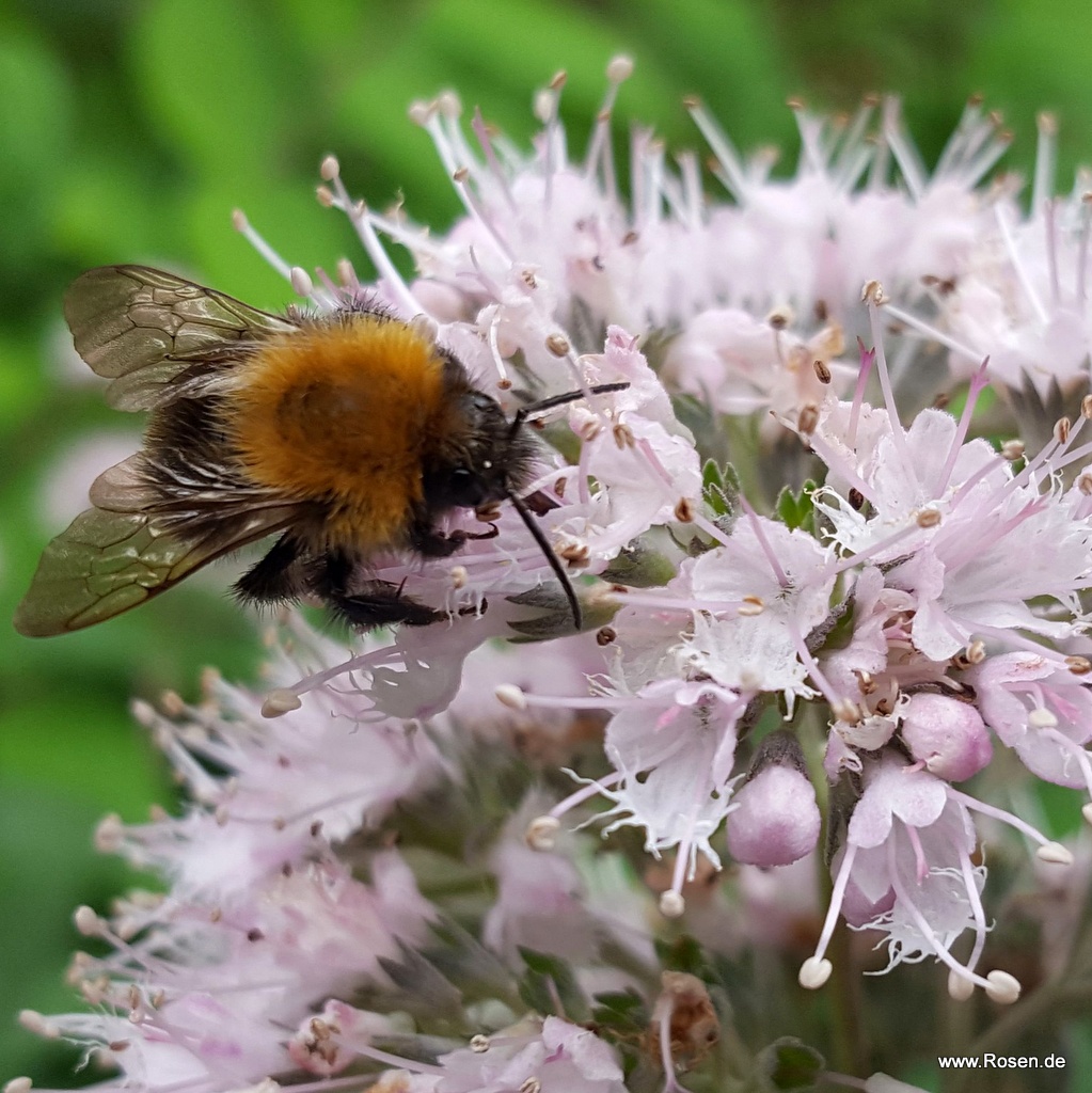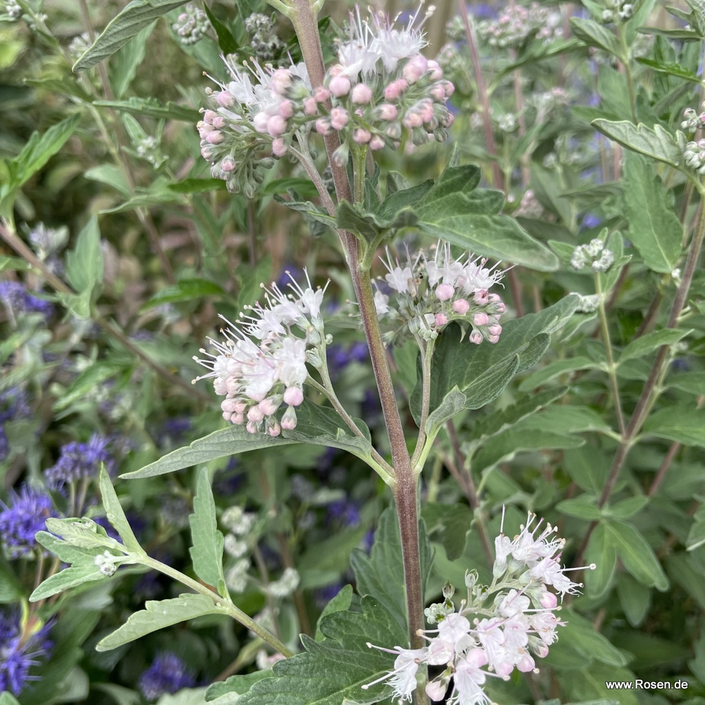 Eine Besonderheit der Bartblume 'Stephi' ist, dass sie nicht nur mit ihren Blüten, sondern auch mit ihren Blättern einen angenehmen Duft verströmt. Während der lange andauernden Blühphase zwischen Juli und Oktober bildet sie eine üppige Anzahl von Blüten im schönsten Rosé über dem silbrig-graugrünem Laub, das Caryopteris x clandonensis 'Stephi' lediglich in kalten Regionen im Winter abwirft. Der insektenfreundliche Kleinstrauch ist winterhart, hat einen buschig-verzweigten Wuchs und erreicht eine Wuchshöhe von ca. 50 bis 80 cm. Im Frühjahr empfiehlt sich ein Rückschnitt.