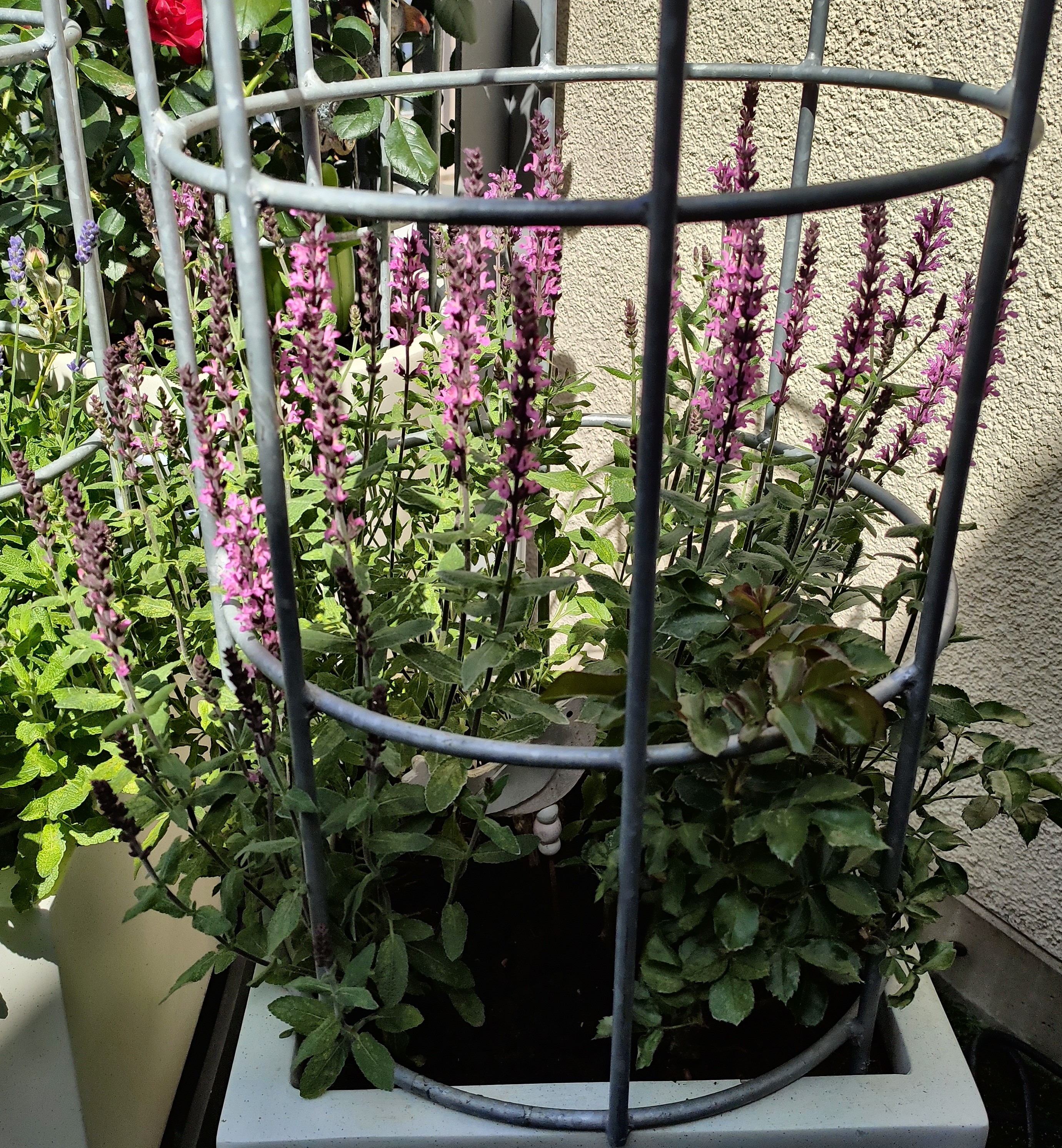 Ziersalbei im zweiten Jahr im Blumentopf auf westseiten-Balkon