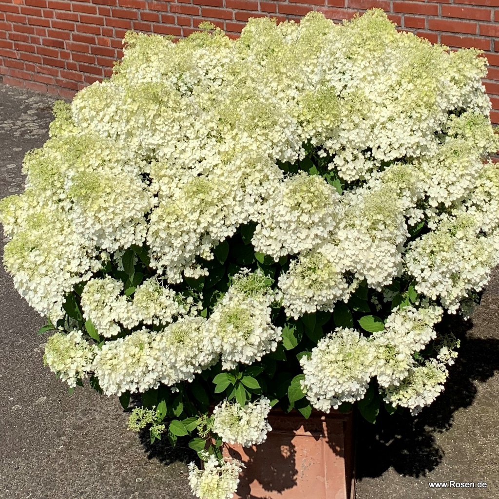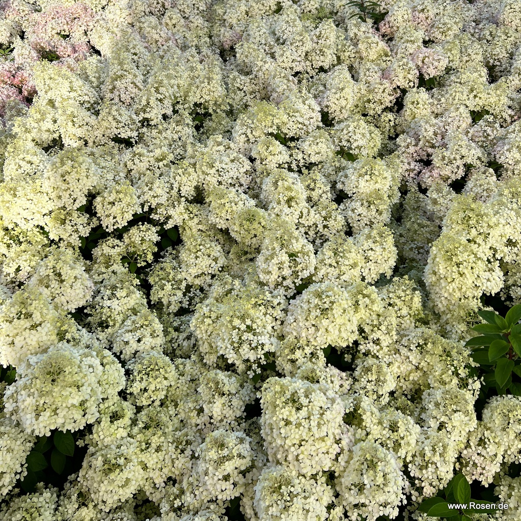 Die kompakt wachsende Zwerg-Rispenhortensie 'Bobo'® erreicht mit ihren aufrechten Trieben eine Wuchshöhe von ca. 70 cm und eignet sich damit perfekt für kleine Gärten, Terrassen, Blütenhecken und Pflanzgefäße. Ihre in schönem Kontrast zur dunkelgrünen Belaubung stehenden kegelförmigen Rispenblüten zeigen sich von Juli bis September anfangs in Weiß und später in Zartrosa. Die Sorte ist extrem reich und lange blühend, sowie ausgesprochen winterhart.
