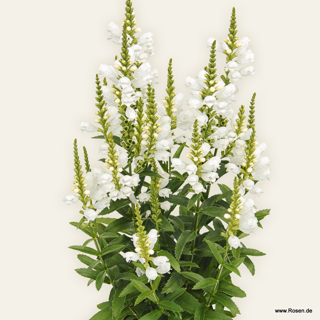 Die Gelenkblume 'Snow Dragon' bildet zwischen Juli und Oktober eine unglaubliche Fülle an weißen Einzelblüten in straff aufrechten Blütenähren und machen die anmutige Staude mit ihrer Leuchtkraft zum Blickfang im Staudenbeet. Physostegia virginiana 'Snow Dragon' erreicht eine Wuchshöhe von ca. 70 bis 80 cm, ist insektenfreundlich und stellt nur geringe Pflegeansprüche. Selbst zum Vasenschnitt eignet sich diese Gelenkblume.