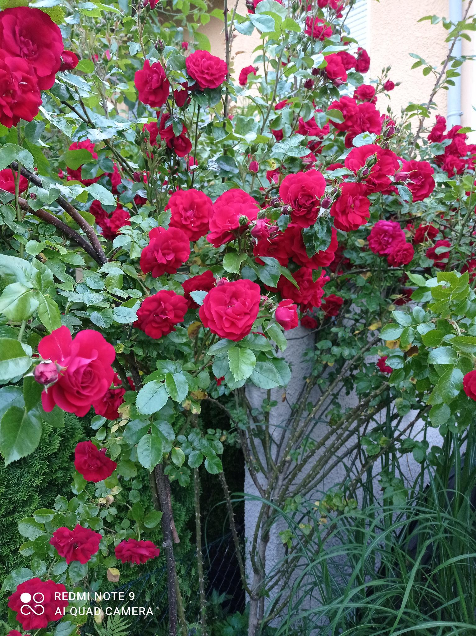 reichblühender Amadeus im Schrebergarten - rankt entlang des Zaunes