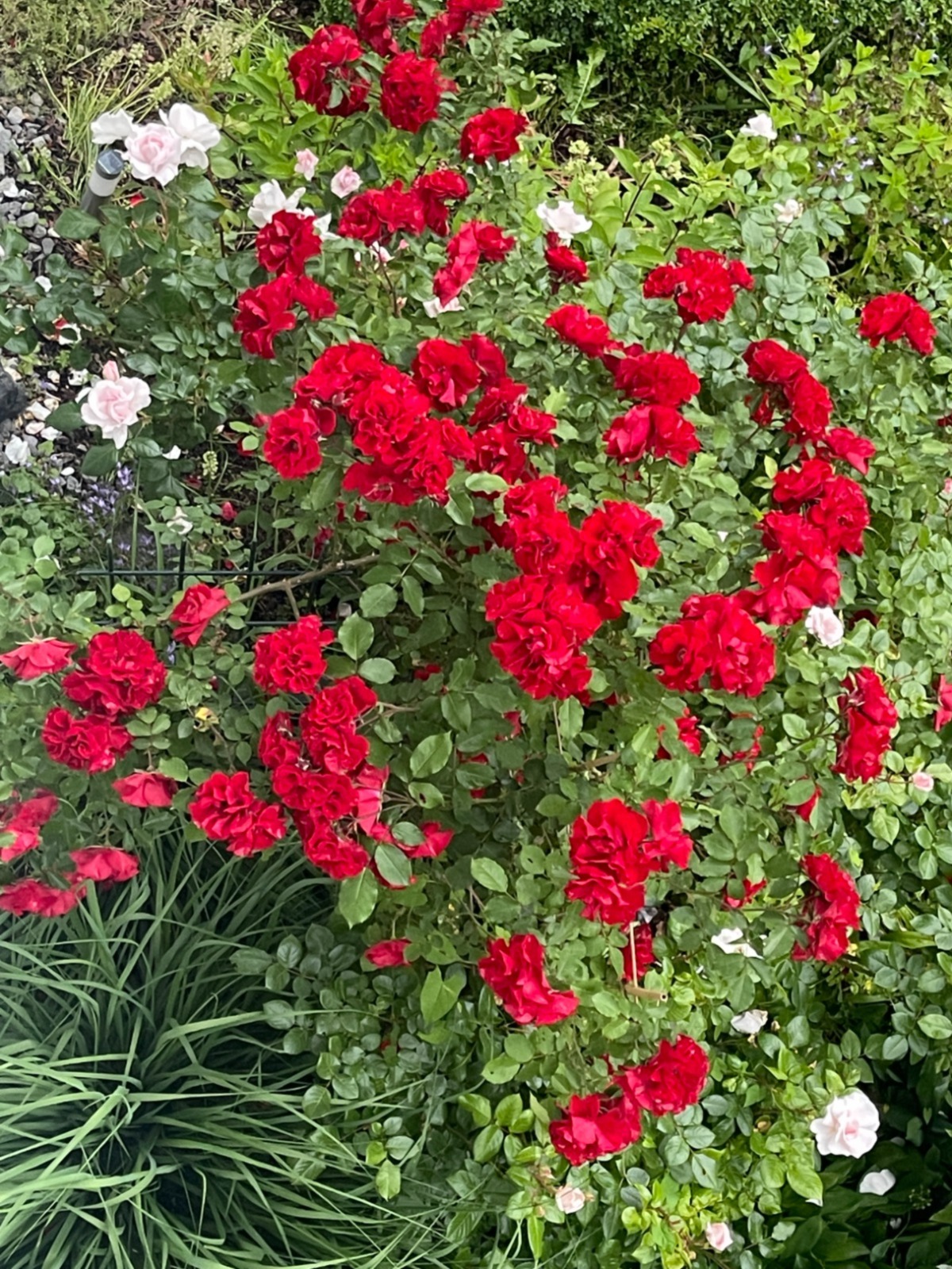 Die Rosen sind unbeeindruckt angegangen und haben schon in der ersten Saison einen guten Wuchs und tolle Blütenpracht abgeliefert. Werden jetzt von Jahr zu Jahr strotziger und quellen schier über vor leuchtenden großen Blüten. Verzeihen viel, Regen, Sturm, sogar einen vergessenen Frühjahrsschnitt; wüchsig, gesund und nahezu wartungsfrei.