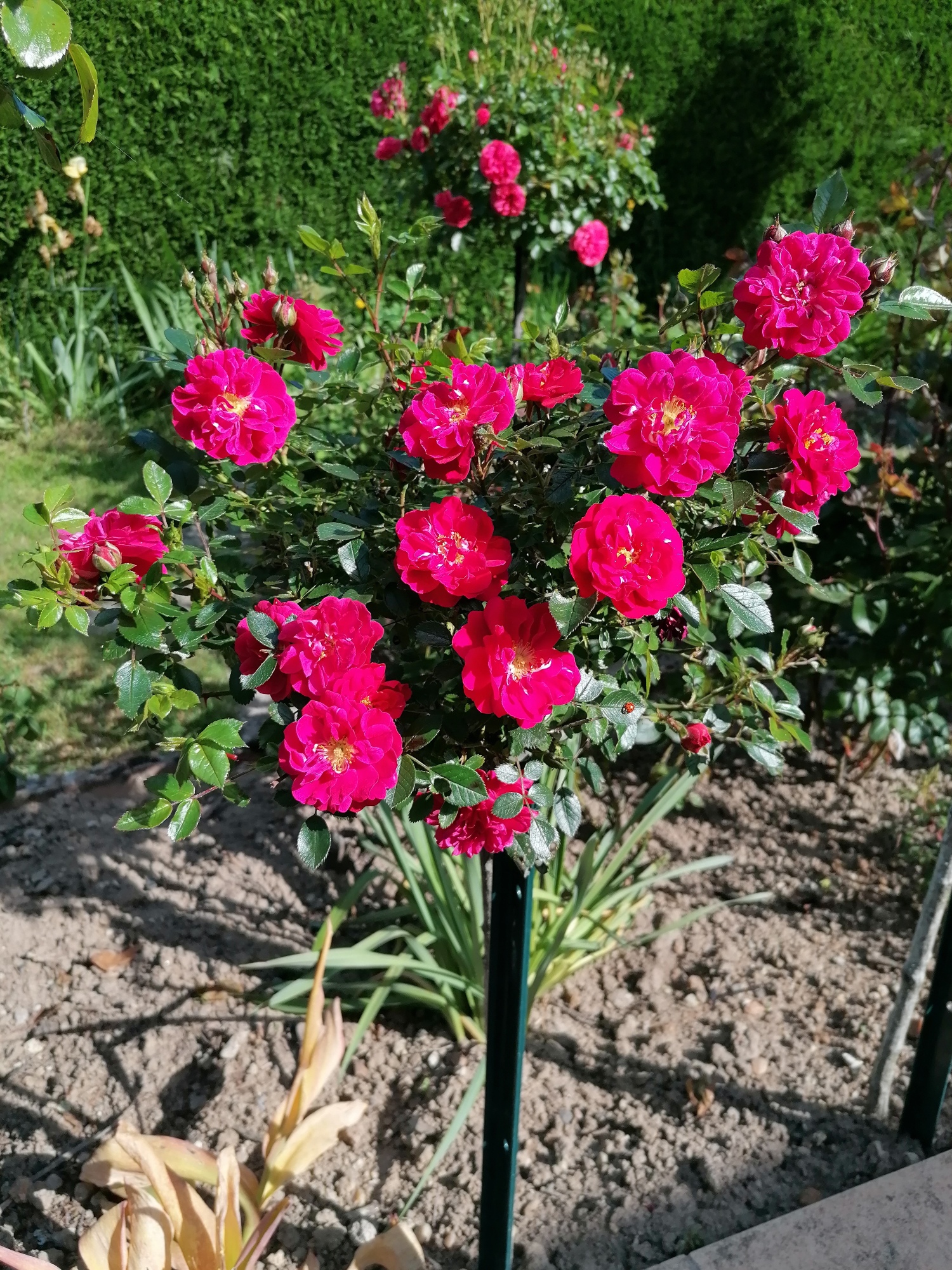 Je l'ai planté en rosier tige dans ma roseraie écologique. Il est parfait pour cet usage, à cette hauteur, où il est bien mis en valeur / I planted it as a standard rose in my ecological rose garden. It's perfect for this use, at this height, where it stands out well.