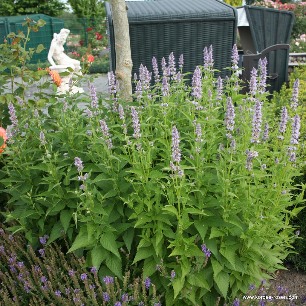 Auffälliger Dauerblüher und hervorragende Insektenweide. Verströmt einen aromatischen Duft. Sehr blühfreudig mit lang andauerndem Flor. Passt zu allen Rosen, aufgrund der Wuchshöhe aber besonders gut zu Strauch- und Kletterrosen.
