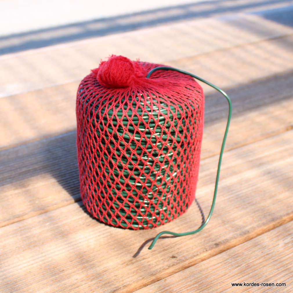 Diese elastische Hohlschnur zum Anbinden von Kletterrosen, Clematis und Co. schneidet nicht ein, da sie mitwächst. Auch zur Befestigung von Winterschutz an Stammrosen ist sie gut geeignet. (Länge 100 m, 3 mm Durchmesser)