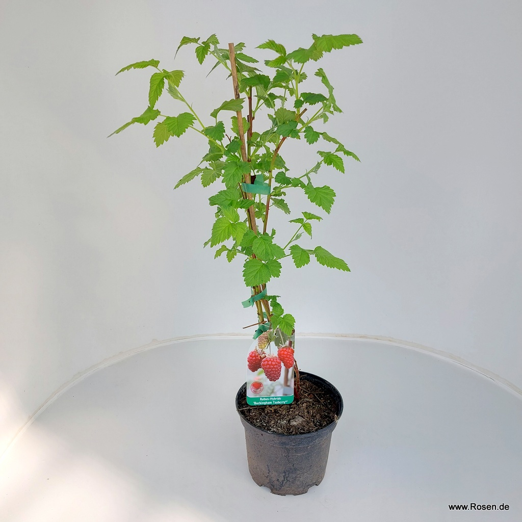 Tayberry Buckingham (ohne Dornen) ist eine Rarität im Obstgarten. Ursprünglich stammt diese Sorte aus Schottland. Das Besondere an ihr ist die Form und der Geschmack. Die Früchte sind fast drei mal so lang wie normale Himbeeren und besitzen einen süßsäuerlichen Geschmack nach Brombeeren. Tayberry Buckingham ist zum Direktverzehr aber auch für Süßspeisen und Gelees geeignet und kann ab Juni geerntet werden.
