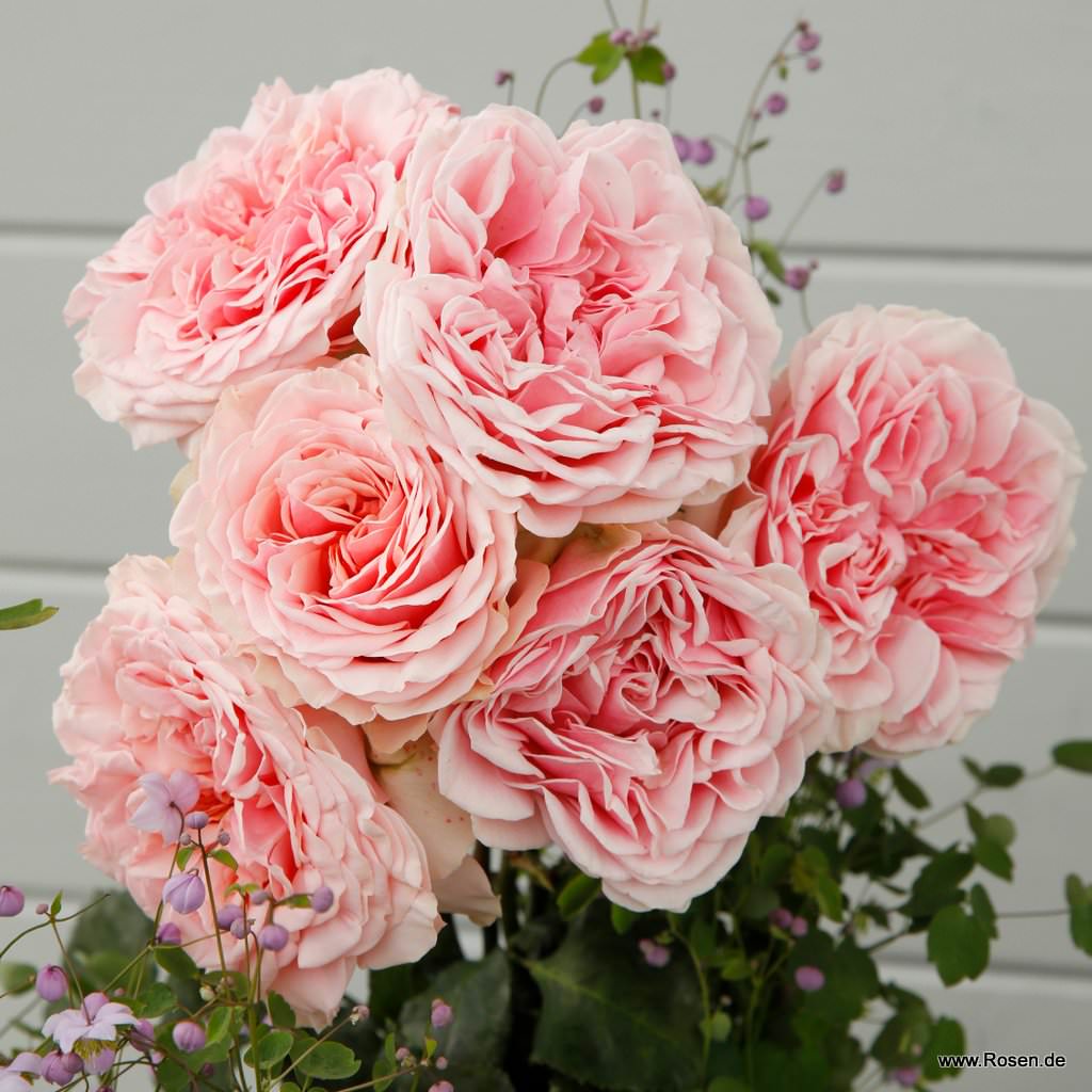 Hybride de thé avec des fleurs de forme nostalgique avec des petites doldes et une foliage saine. Les fleurs romantiques sentent délicatement et ont des pétales très résistants aux intempéries, ce qui les rend durables longtemps et rend la variété très adaptée à la coupe de vase.