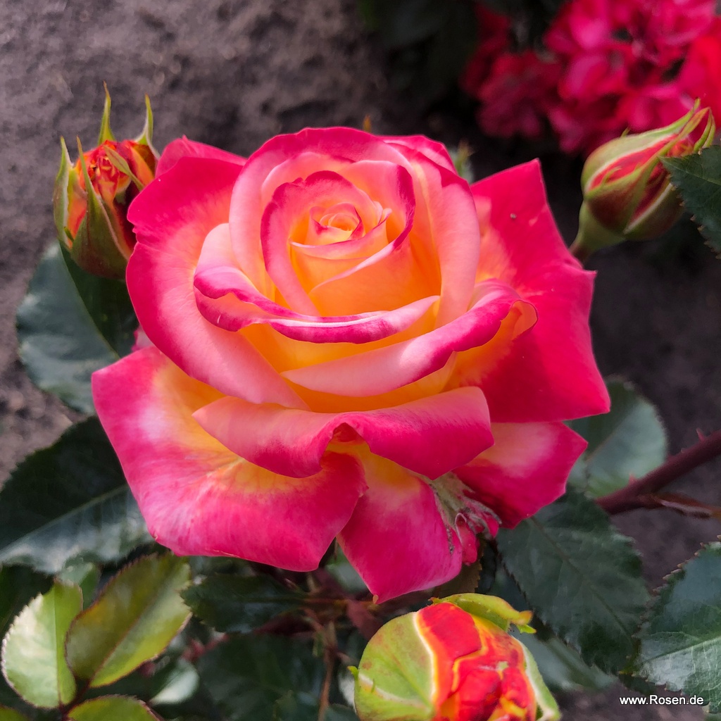 Hybride de thé colorée avec des grandes fleurs élégantes qui durent bien et conviennent également pour être coupées dans des vases. Grâce à sa croissance compacte et touffue, il est également idéal pour les jardinières. Ajouter à la collection ELEGANZA, nommée en juin 2024 en coopération avec le Casino Baden-Baden.