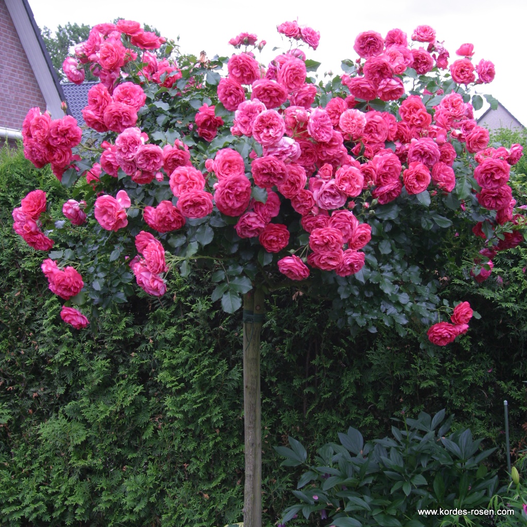 Habe die Rose vor einem Jahr als Hochstamm 0,80 m gekauft. Schon im ersten Jahr hatte sie wunderbare Blüten mit zartem Duft. Jetzt im zweiten Jahr kommen doppelt so viele Blüten und im Sonnenschein ist es ein wunderbares Bild ... ABER jetzt nach einem leichten Regen hängen die Zweige mit den zahlreichen Blüten sehr nach unten und die Zweige drohen unter der Last der Blüten zu brechen. Sie sieht leider nicht mehr schön aus. Werde versuchen mir ein paar Stützen für die tiefhängenden Zweige zu besorgen. Ich finde, aufgrund der vielzahl der großen Blüten (bei mir ca. 10 Stück) pro Stengel ist die Rose einfach überlastet und leidet sehr im Aussehen.