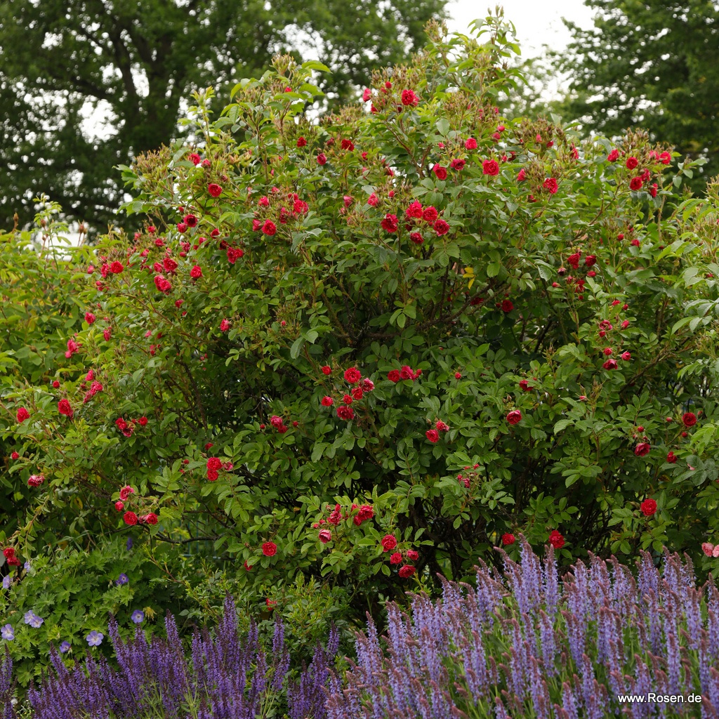F. J. Grootendorst steht solitär in Kombination mit einem tiefblauen Rittersporn jetzt im 3. Jahr. Sie ist trotz der zwei harten Winter in den Jahren 11/12 u. 10/11 sehr wüchsig, entwickelte sich prächtig und überzeugt durch ihre Blütenpracht u. Farbe. Die Blüte ist auch beständig bei regnerischem Wetter. J.F.G. zeigte eine bessere Frostresistenz als Pink Grootendorst u. andere Kartoffelrosenabkömmlinge.