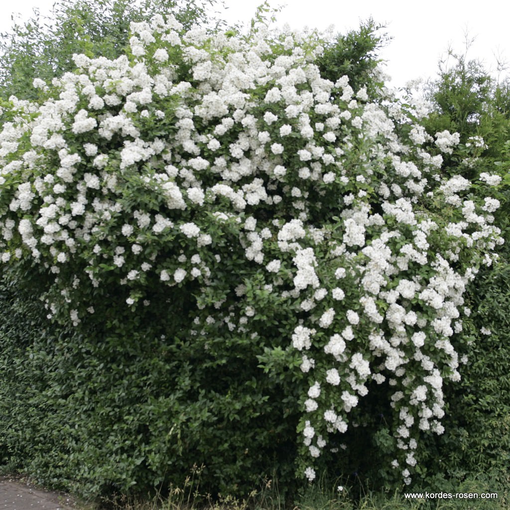 Mir geht es wie den Vorrednern: Die Rose wächst wie Unkraut. Ich hatte Zweige auf dem Kompost, sie haben dort Wurzeln geschlagen... Sie blüht wie verrückt, schön anzusehen und toll für Insekten. Im letzten Herbst habe ich sie aber bis auf 40 cm gekürzt, weil alle Hagebutten und Zweige Mehltau hatten. Dabei hatte ich mich auf die Zweige in der Vase sehr gefreut. In diesem Jahr ist sie schon zwischen 3 und 4 m gewachsen. Man braucht wirklich VIEL Platz für diese Rose.
