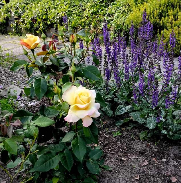 Amfamg März gepflanzt. Die Rose und der daugehörige Salbei haben sich bis jetzt Ende Mai, phantastisch entwickelt!