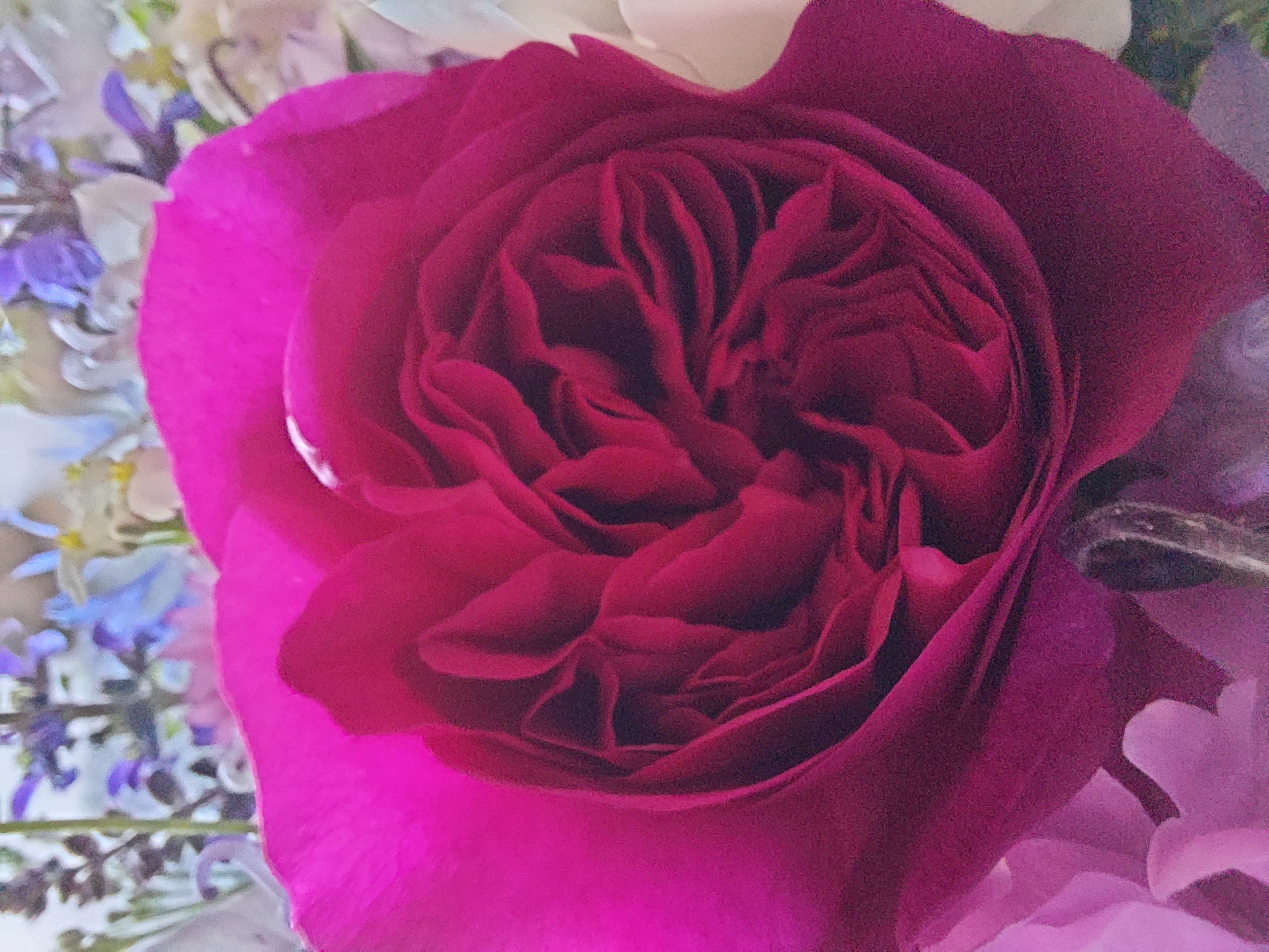 Nachdem die Rose anfangs sehr große Köpfe auf schwachen Stielen hatte, die sich auch nicht öffneten, ist sie nun im 3. Jahr eine wunderbare Rose mit voll geöffneten geviertelten Blüten geworden. Die Pflanze ist total gesund und kräftig und der Duft ganz wunderbar sowie auch die kräftige Farbe. Es stehen 2 Exemplare nebeneinander, so dass sie eine herrliche Fläche bilden, gerahmt mit blauem Salbei.