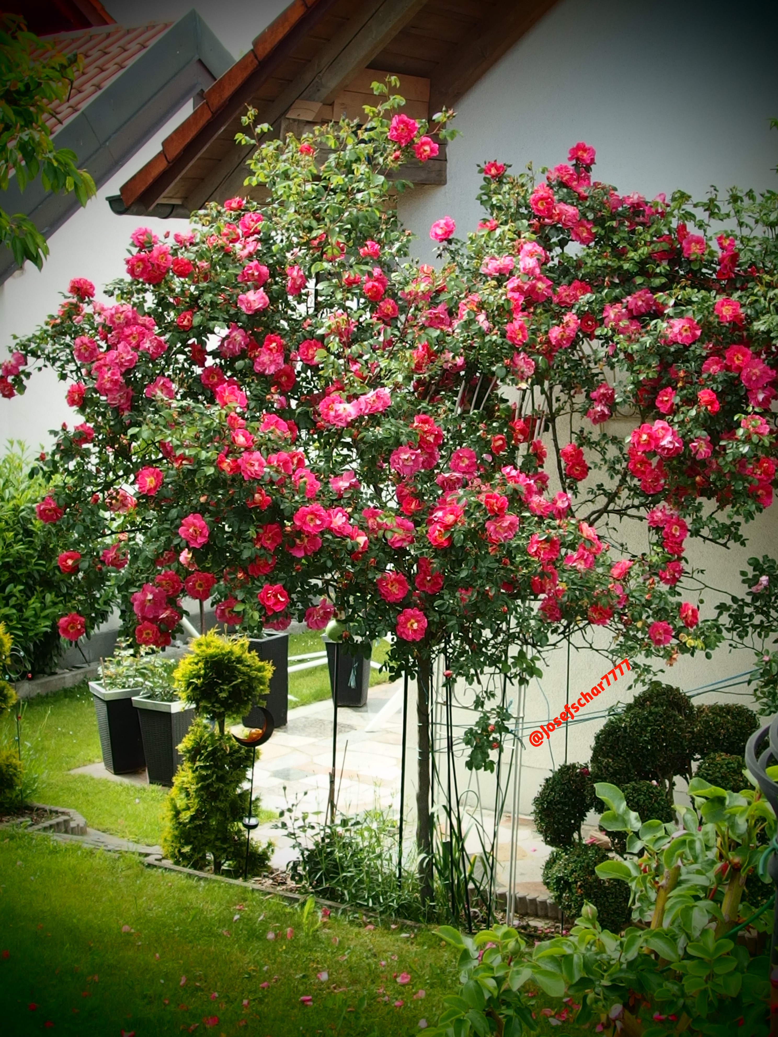 Die Bajazzo ist bei uns über einen Pavillon gewachsen, wir haben sie bereits seit fünf Jahren. Sie blüht und blüht und blüht und ist einfach nur prachtvoll. Im Herbst bildet sie zahlreiche Hagebutten aus. Außerdem ist sie absolut gesund. Sehr empfehlenswert!