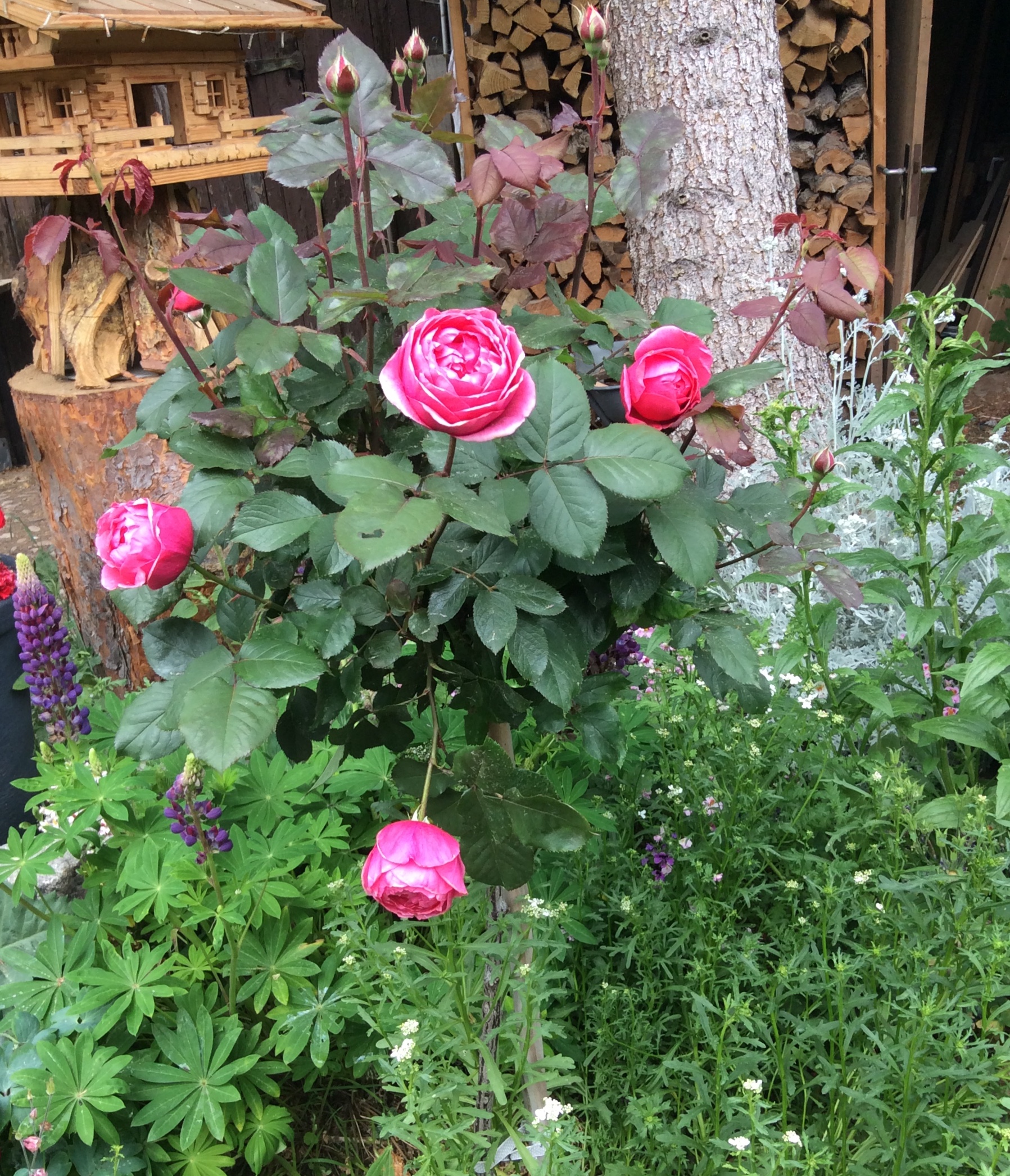 Die Gartenprinzessin Marie, gleichnamig mit einer meiner Töchter, ist eine ausgesprochen schöne Rose im Stil englischer Rosen, wie ich finde. Ich liebe die Farbe der Blüten sowie ihre runde Form. So eine Farbnuance kannte ich noch nicht! Sie leuchtet richtig in einem warmen pink-rot. Und dazu der Duft... Wow! Natürlich war ich magisch angezogen aufgrund des Namens, doch tatsächlich hat mich diese Rose ganz verzaubert. Ich könnte sie stundenlang betrachten und meine kleine Tochter schnuppert jeden Tag an ihr.